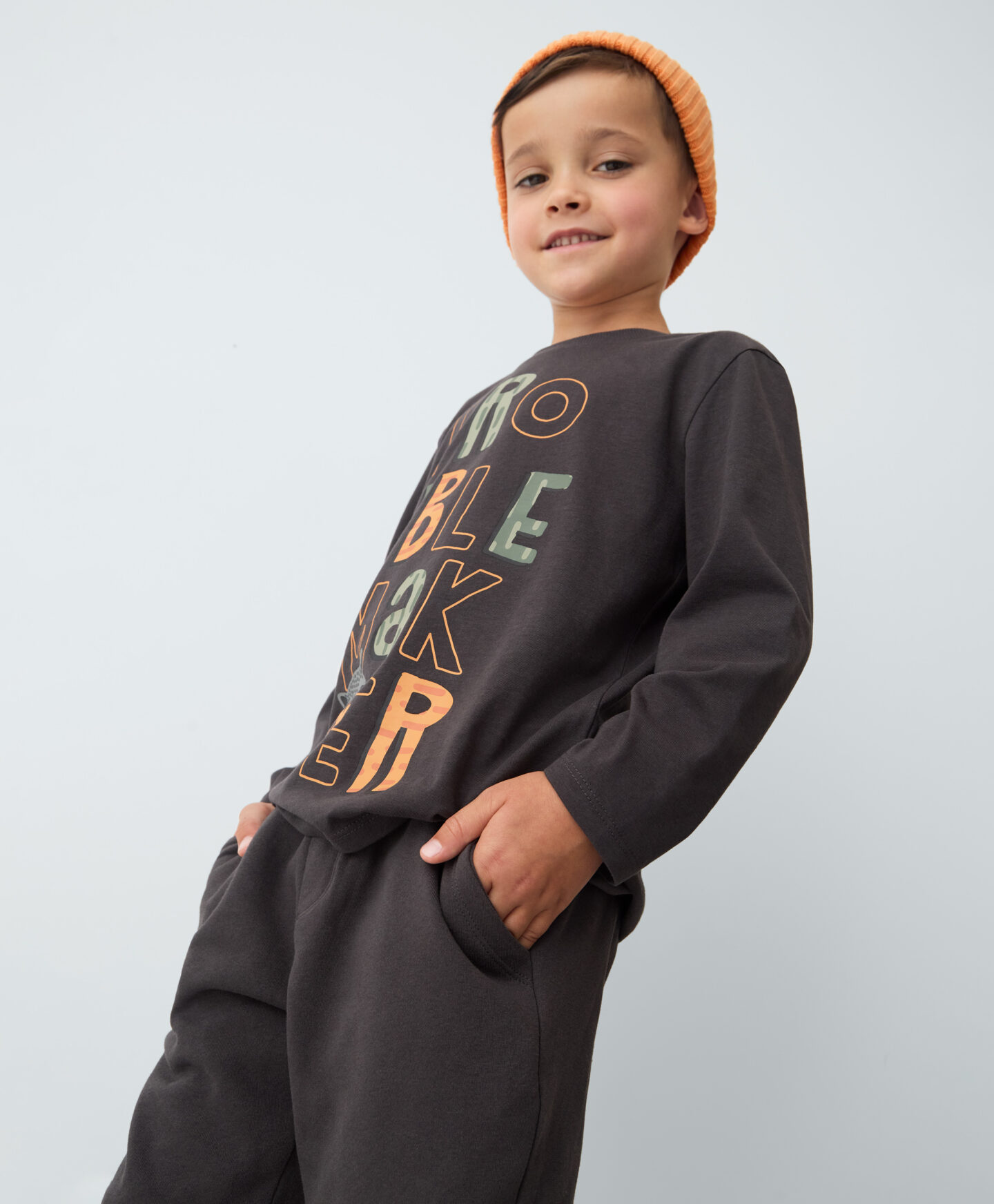 Το αθλητικό παντελόνι για αγόρια με υψηλή περιεκτικότητα σε βαμβάκι είναι ένα must-have της φθινοπωρινής γκαρνταρόμπας. Με ελαστικές μανσέτες, εξασφαλίζει ζεστασιά και άνεση. Το ευχάριστο στο δέρμα ύφασμα αγκαλιάζει απαλά τη σιλουέτα, εξασφαλίζοντας στο παιδί άνεση σε κάθε κίνηση. Στην προσφορά διατίθεται και ένα ιδανικά ταιριαστό μακρυμάνικο μπλουζάκι.