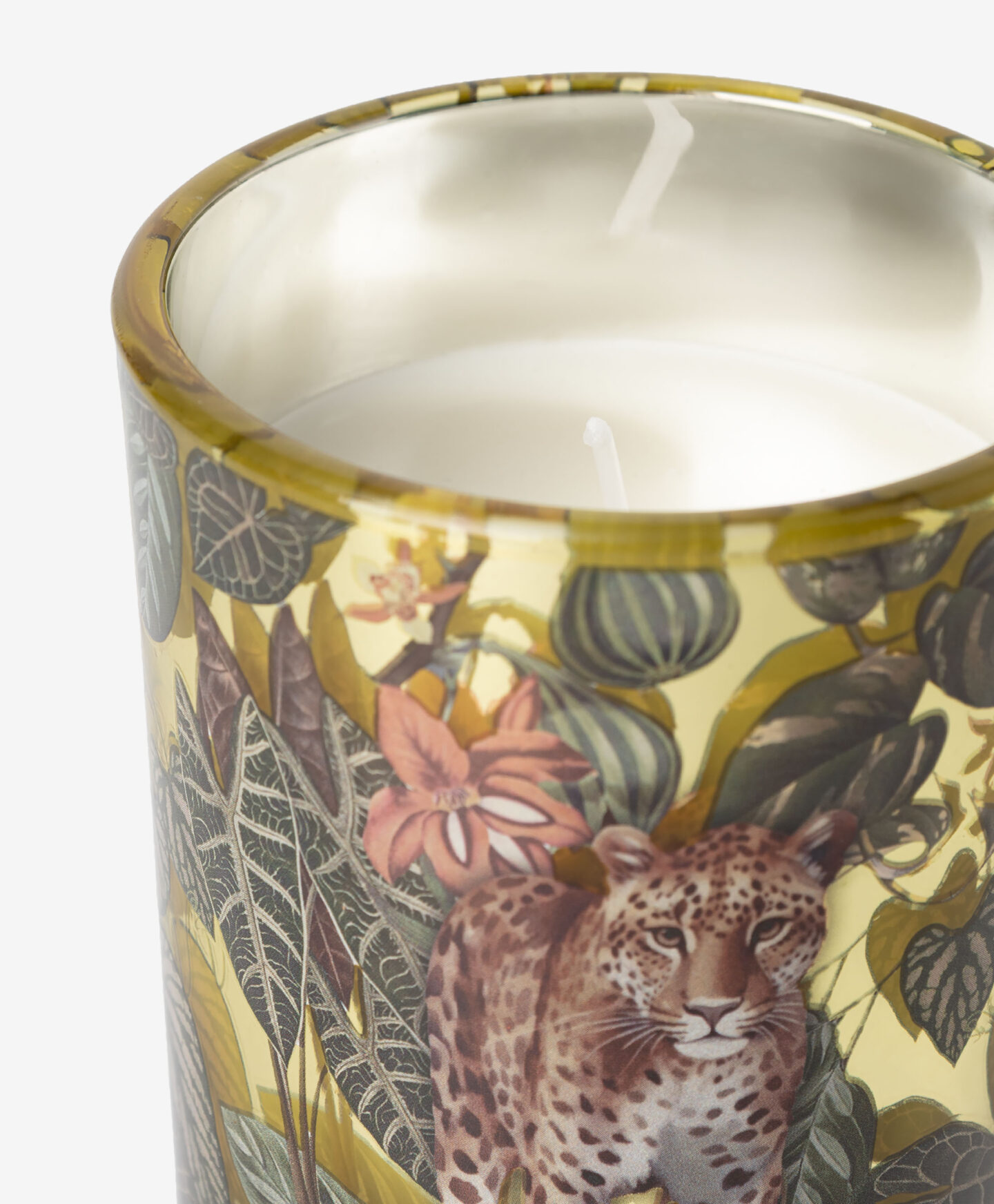Το αρωματικό κερί σε γυάλινο δοχείο θα προσδώσει σε κάθε εσωτερικό χώρο μια μοναδική λάμψη. Το φως του κεριού αναδεικνύει τις πρωτότυπες διακοσμήσεις με φυτικά και ζωικά σχέδια, ζωντανεύοντας τα σχέδια της ζούγκλας με τη λάμψη του. Είναι ένα όμορφο διακοσμητικό στοιχείο.