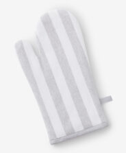 Το γκρι ριγέ γάντι φούρνου είναι ένα απαραίτητο αξεσουάρ σε κάθε κουζίνα. Προστατεύει τέλεια τα χέρια από εγκαύματα κατά το μαγείρεμα και το ψήσιμο, εξασφαλίζοντας ασφάλεια και άνεση στη χρήση. Θα είναι επίσης ένα αισθητικό διακοσμητικό στοιχείο στην κουζίνα. Διατίθενται διάφορα σχέδια.