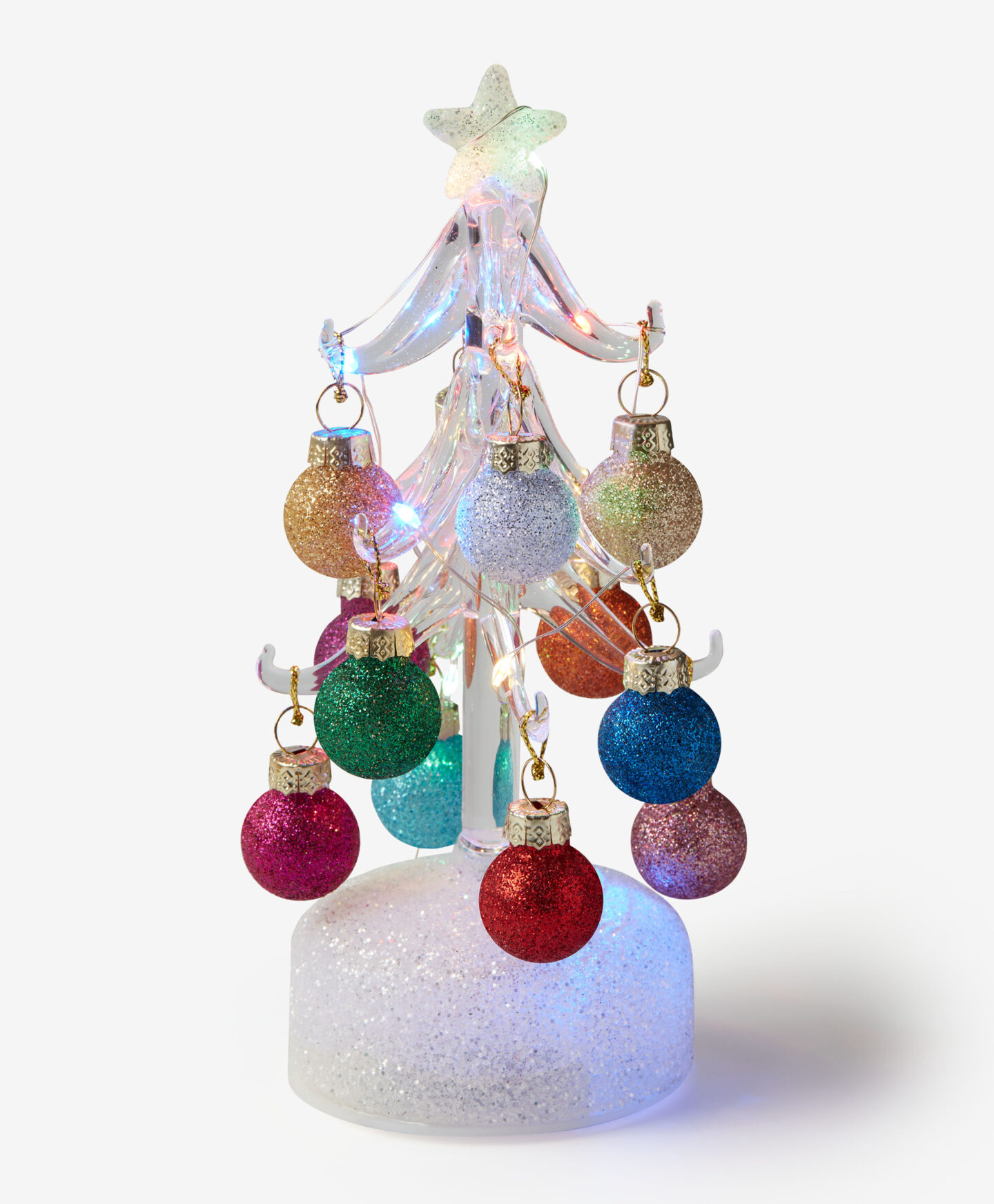 Γυάλινο Χριστουγεννιάτικο δέντρο LED με στολίδια