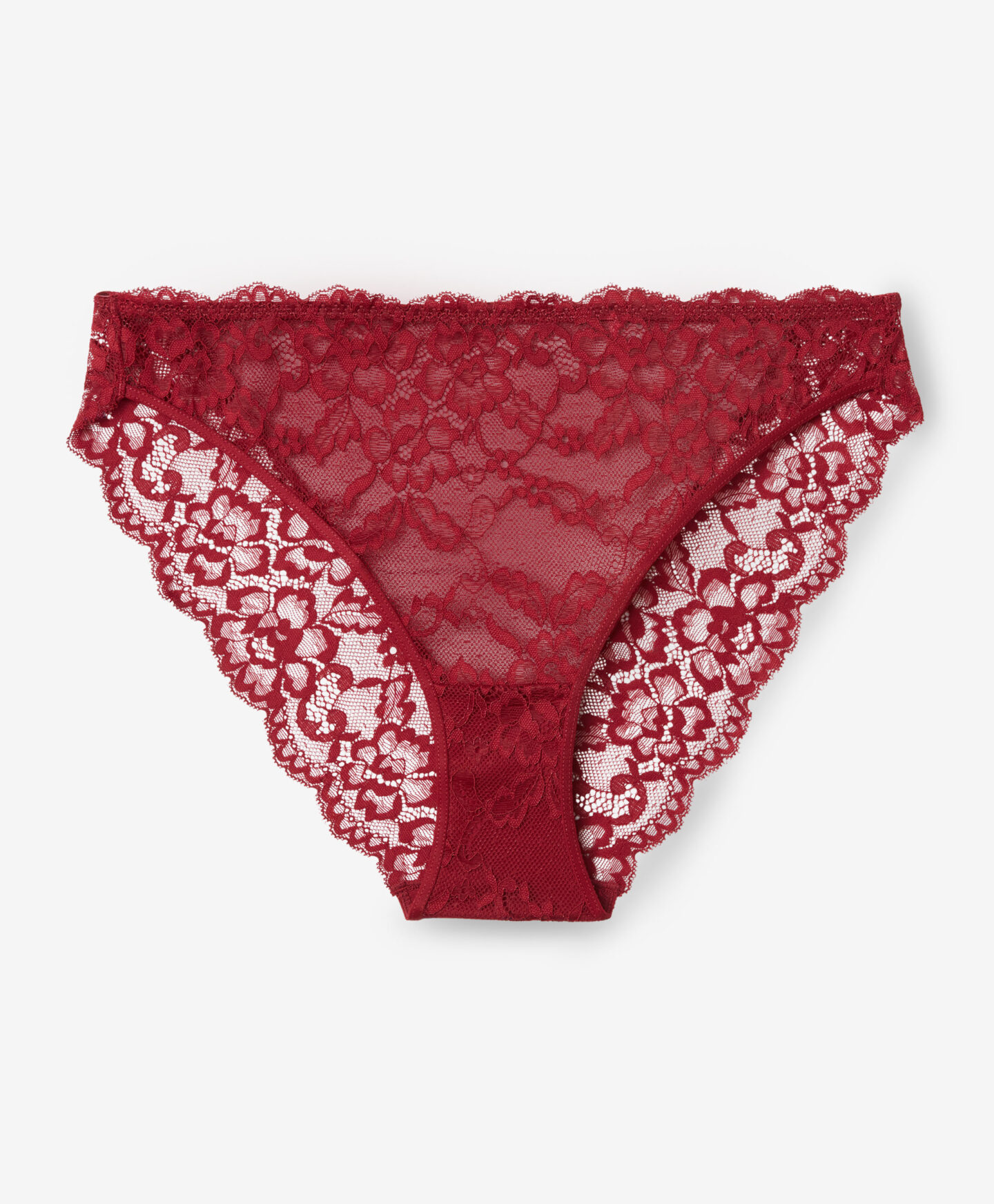 Τα γυναικεία εσώρουχα μπικίνι από δαντέλα σε μπορντό χρώμα με τριαντάφυλλα είναι μια αισθησιακή επιλογή που θα σας κάνει να νιώσετε απίστευτα θηλυκή. Η προσθήκη ελαστάνης εξασφαλίζει την τέλεια εφαρμογή των εσωρούχων, τονίζοντας τις καμπύλες σας. Η διαφανής δαντέλα είναι μια εξαιρετική επιλογή όταν θέλετε να ενισχύσετε την αυτοπεποίθησή σας. Στην συλλογή διατίθεται και ασορτί σουτιέν.