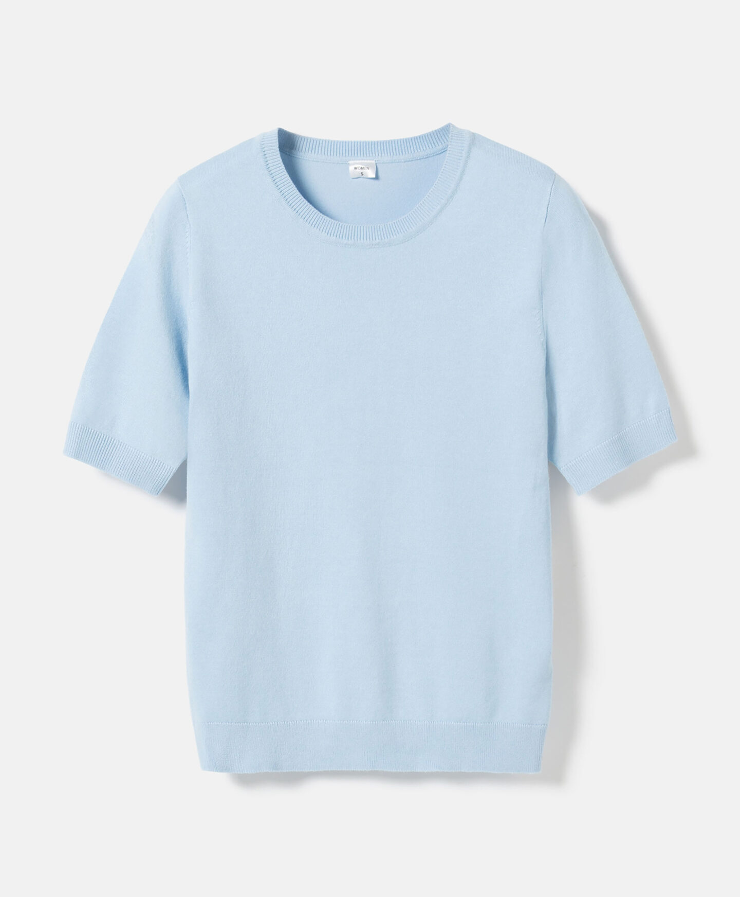 Το μπλε γυναικείο πουλόβερ με κοντά μανίκια είναι ένα αξιόπιστο βασικό κομμάτι της ντουλάπας. Ταιριάζει τέλεια στις μεταβατικές εποχές. Το βαθύ μπλε χρώμα συνδυάζεται όμορφα με τα περισσότερα ρούχα της ντουλάπας σας. Τα κοντά μανίκια προσφέρουν πολλές επιλογές στυλ — μπορείτε να το φορέσετε μόνο του ή σε συνδυασμό με ένα σακάκι. Η καθολική γραμμή προσαρμόζεται τέλεια σε διαφορετικούς σωματότυπους. Το πουλόβερ είναι εύκολο στη φροντίδα για καθημερινή χρήση και διατηρεί το χρώμα και το σχήμα του ακόμα και μετά από πολλά πλυσίματα.
