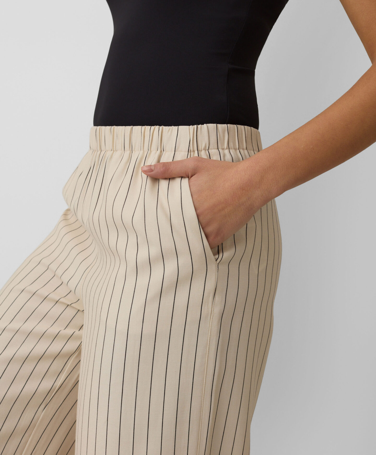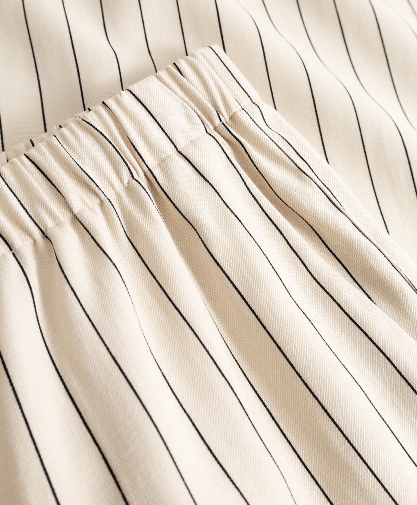 Τα γυναικεία ριγέ παντελόνια ταιριάζουν τέλεια με ένα γιλέκο με το ίδιο σχέδιο. Η υψηλή περιεκτικότητά τους σε βισκόζη τα καθιστά ελαφριά, αέρινα και με τέλεια πτώση. Τα απαλά χρώματά τους επιτρέπουν να συνδυαστούν εύκολα με μονόχρωμα μπλουζάκια, από μπλούζες μέχρι κομψά πουκάμισα.