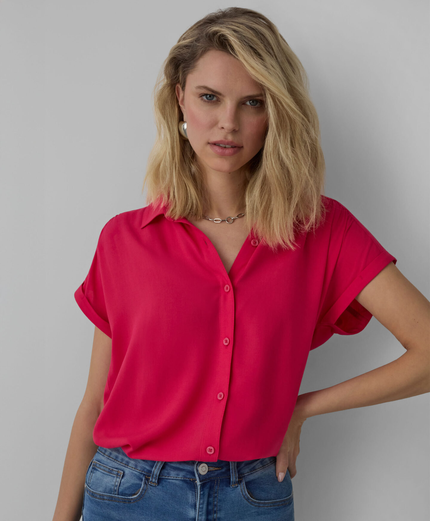 Ένα γυναικείο πουκάμισο από 100% βισκόζη ξεχωρίζει με ένα χρώμα που θα ζωντανέψει κάθε σύνολο. Έχει άνετη γραμμή, κλείσιμο με κουμπιά στο μπροστινό μέρος και κοντά μανίκια. Είναι ελαφρύ, ρέον και δημιουργημένο για συνδυασμούς με στρώσεις. Δεν μπορεί να λείπει από την ντουλάπα σας!