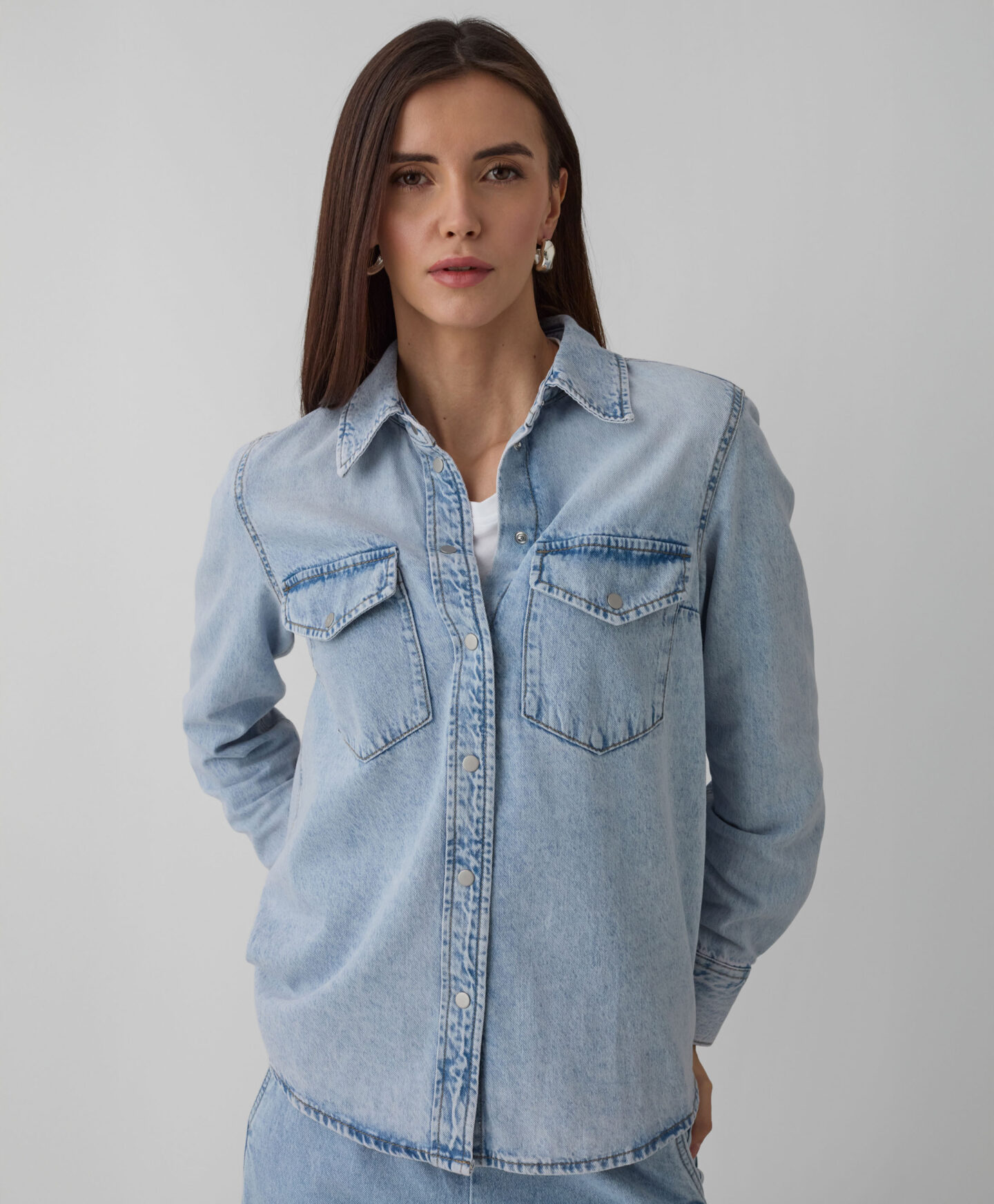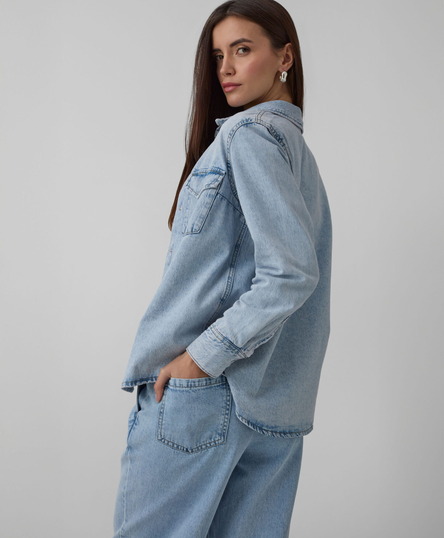 Ένα γυναικείο πουκάμισο από 100% βαμβακερό τζιν είναι ένα αναντικατάστατο στοιχείο της ντουλάπας για κάθε λάτρη του κλασικού στυλ. Το τζιν σε απαλό μπλε χρώμα θα ταιριάζει υπέροχα με κάθε ρούχο της ντουλάπας σας — από παντελόνια μέχρι φούστες, από casual μέχρι πιο κομψές συνδυασμούς. Το πουκάμισο διαμορφώνει απαλά τη σιλουέτα, προσφέροντας παράλληλα πλήρη ελευθερία κινήσεων και απαράμιλλη άνεση κατά τη χρήση. Οι τσέπες στο στήθος είναι λειτουργικές, αλλά προσθέτουν και χαρακτήρα.