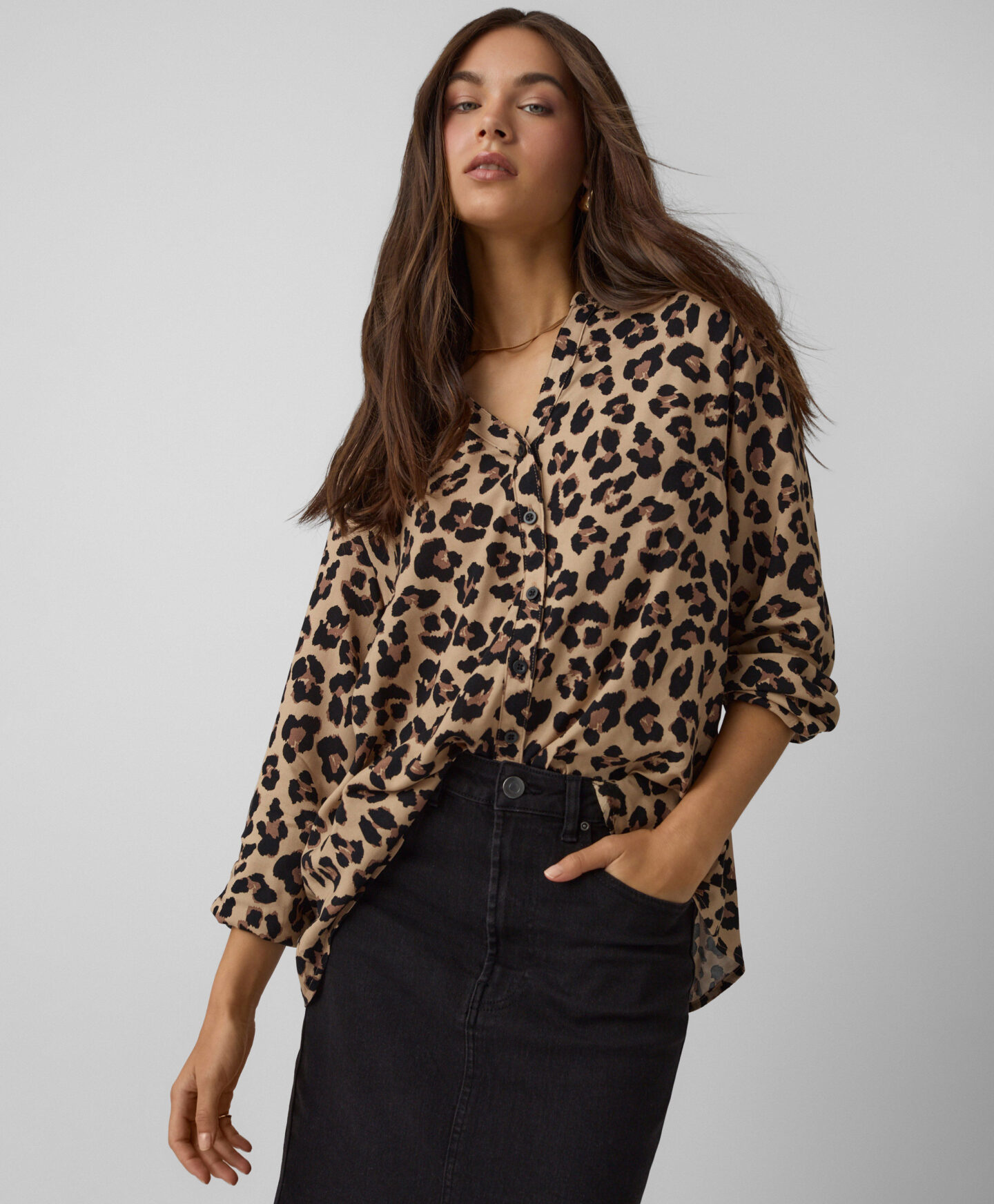 Ένα γυναικείο πουκάμισο από 100% βισκόζη με σχέδιο θα είναι μια μοντέρνα πινελιά στη ντουλάπα σας. Είναι ελαφριά, αέρινη και αναπνέει. Ιδανική για να φορεθεί κάτω από ένα σακάκι ή ένα πιο ζεστό πουλόβερ. Το στίγμα το ξεχωρίζει από άλλες μπλούζες.