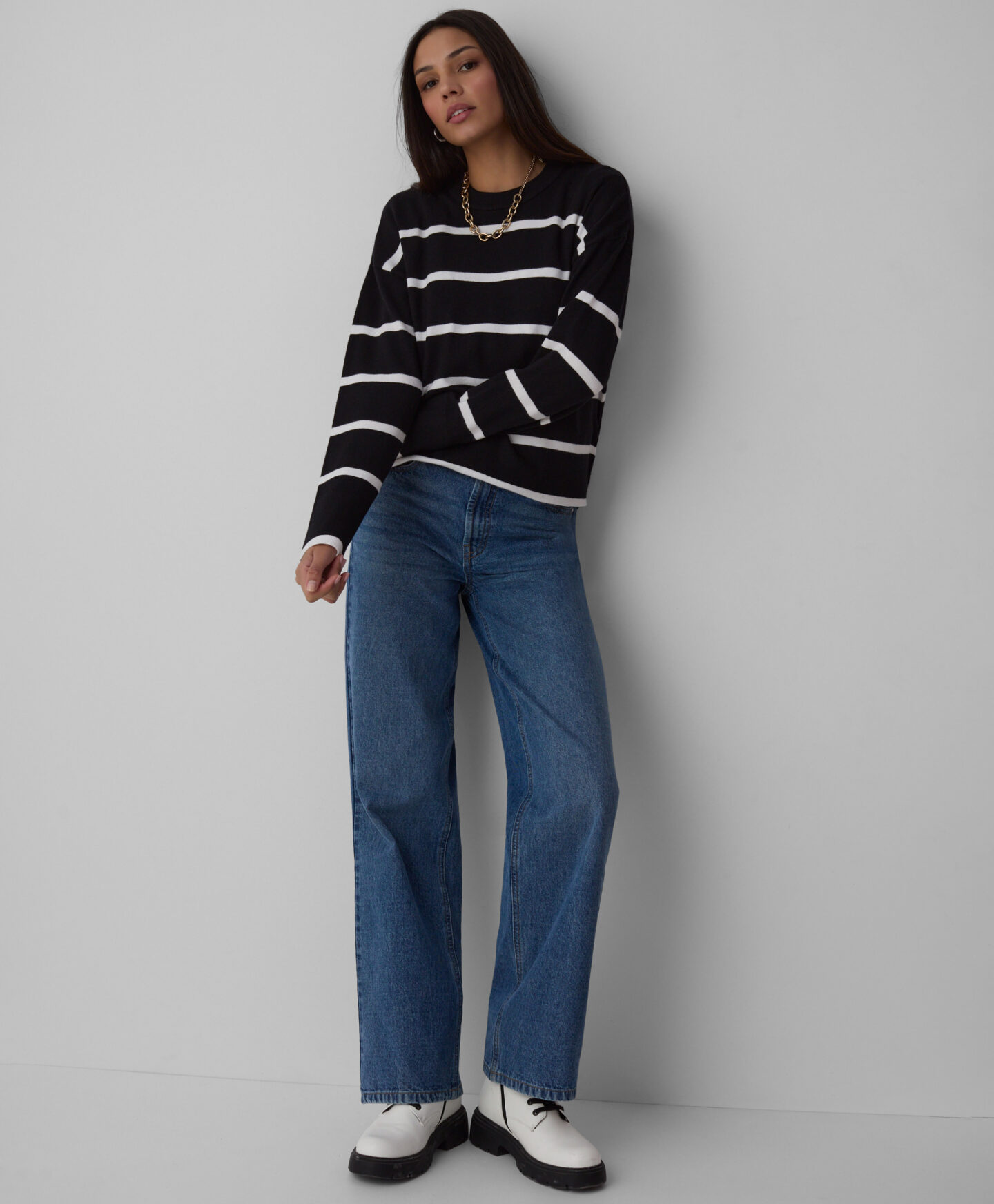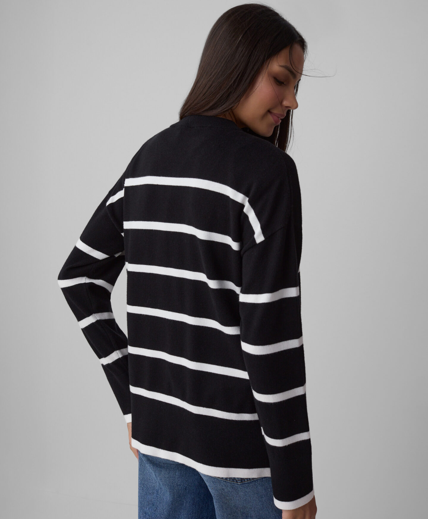Ένα ριγέ γυναικείο πουλόβερ από βισκόζη ταιριάζει υπέροχα με τζιν. Είναι ελαφρύ, ευχάριστο στην αφή και ιδανικό για καθημερινή χρήση. Ενισχυμένο με κομψά αξεσουάρ, θα είναι μια εξαιρετική επιλογή για το γραφείο, για έξοδο με φίλους ή για πιο επίσημες περιστάσεις. Το διαχρονικό ριγέ σχέδιο θα συμπληρώσει τέλεια την ντουλάπα σας.