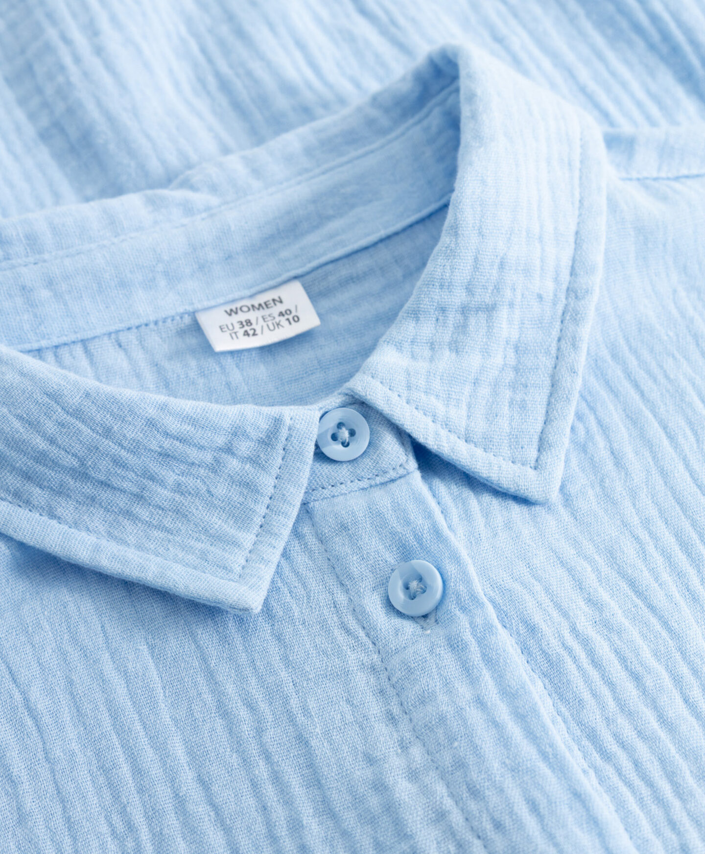 Ένα γυναικείο πουκάμισο από 100% βαμβακερό μουσελίνα είναι η τέλεια επιλογή για γυναίκες που εκτιμούν τα φυσικά υλικά. Η ελαφριά και αναπνέουσα μουσελίνα εξασφαλίζει άνεση στη χρήση. Είναι ιδανικό τόσο για casual ντυσίματα με τζιν όσο και για πιο κομψά σύνολα.