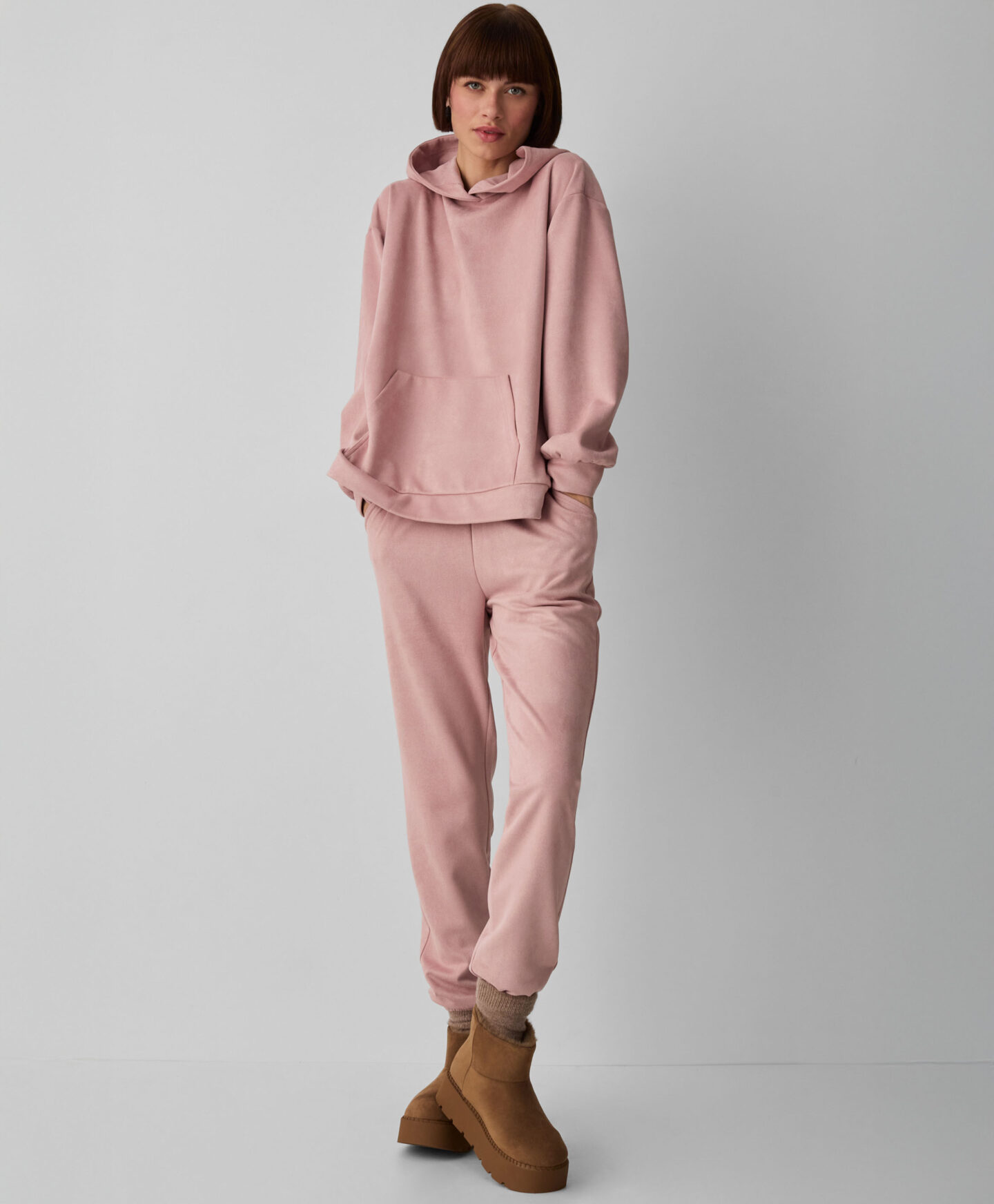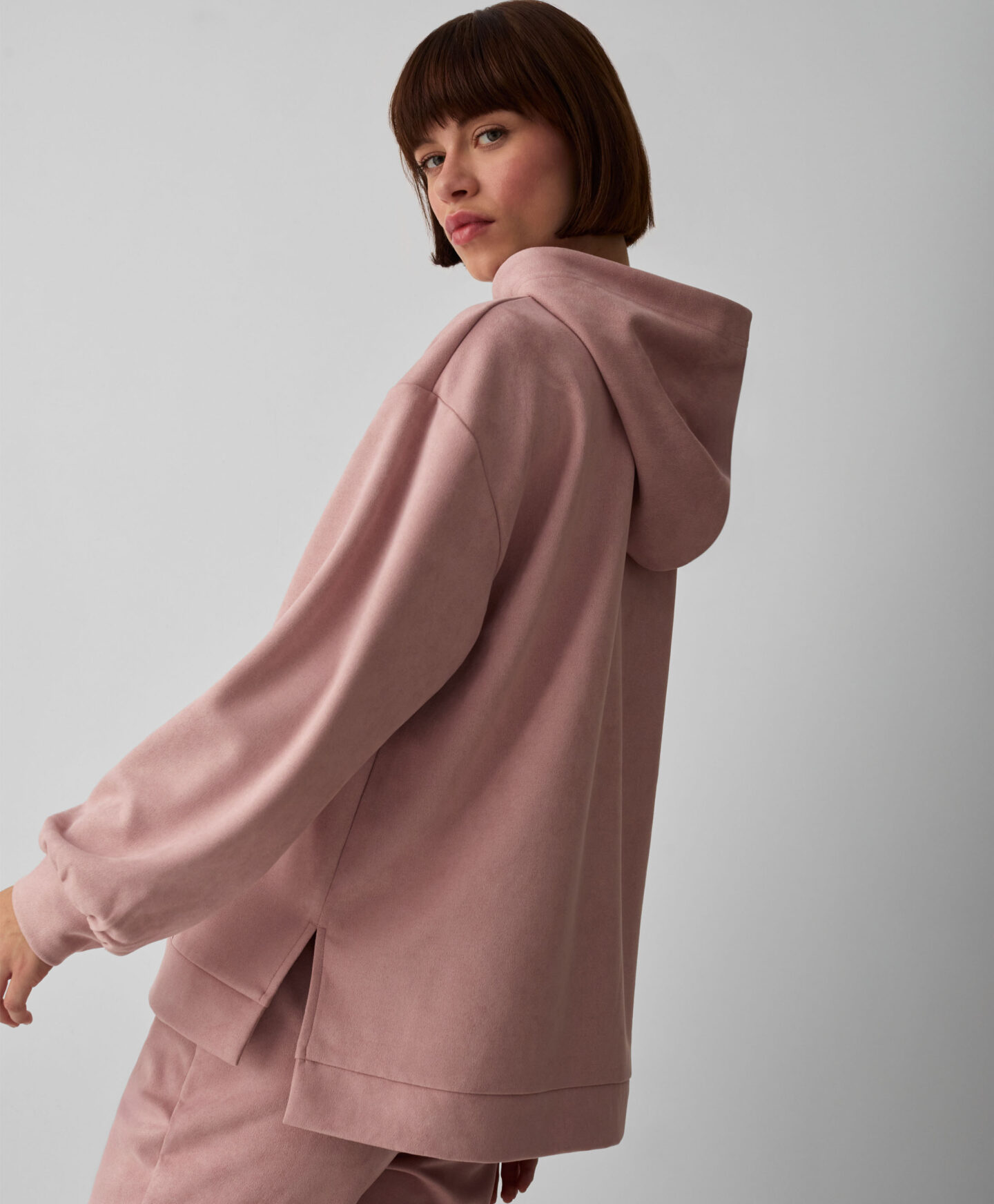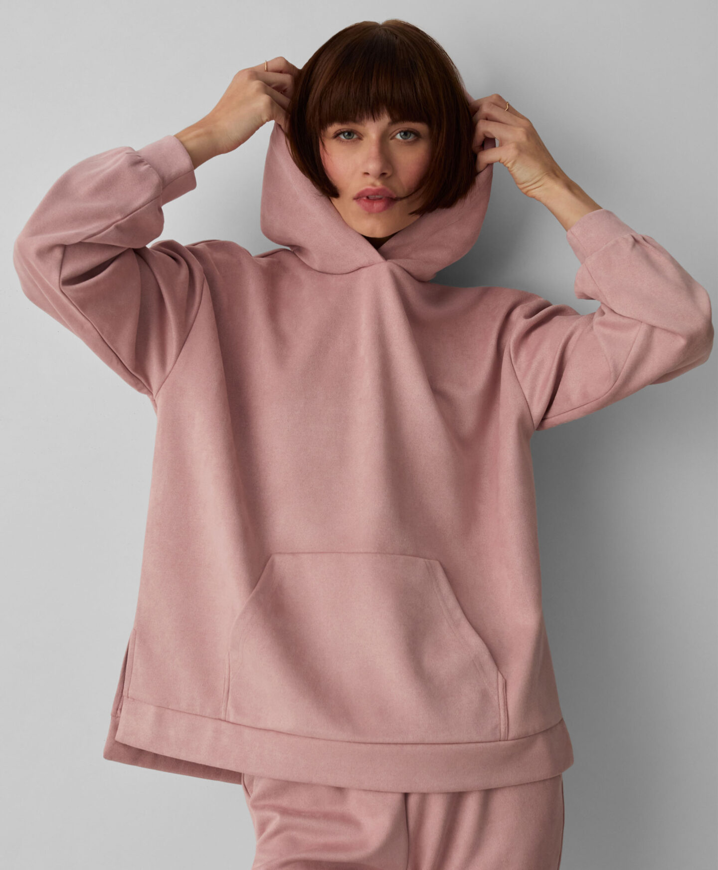 Το ροζ γυναικείο φούτερ από σουέτ με κουκούλα θα σας προσφέρει άνεση και ζεστασιά στις κρύες μέρες. Δεν είναι μόνο άνετο, αλλά και κομψό. Το μαλακό υλικό, ο προσεγμένος σχεδιασμός και η θηλυκή χρωματική παλέτα θα το κάνουν το αγαπημένο σας φούτερ με κουκούλα αυτό το φθινόπωρο! Ταιριάζει τέλεια με το σουέτ παντελόνι της συλλογής. Στο κατάστημα, θα βρείτε δύο χρωματικές παραλλαγές αυτού του φούτερ με κουκούλα.