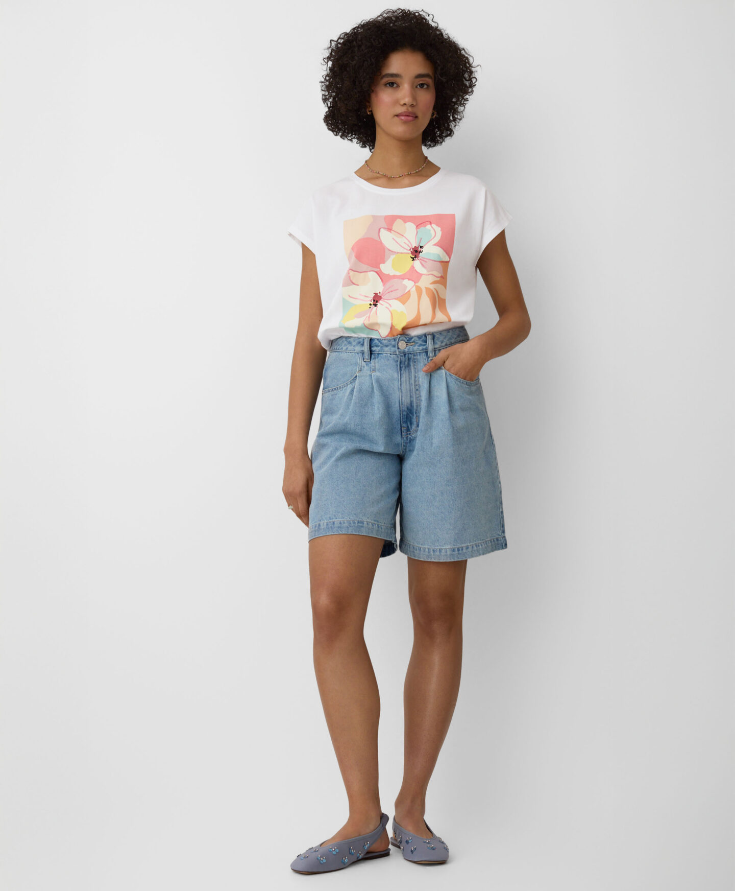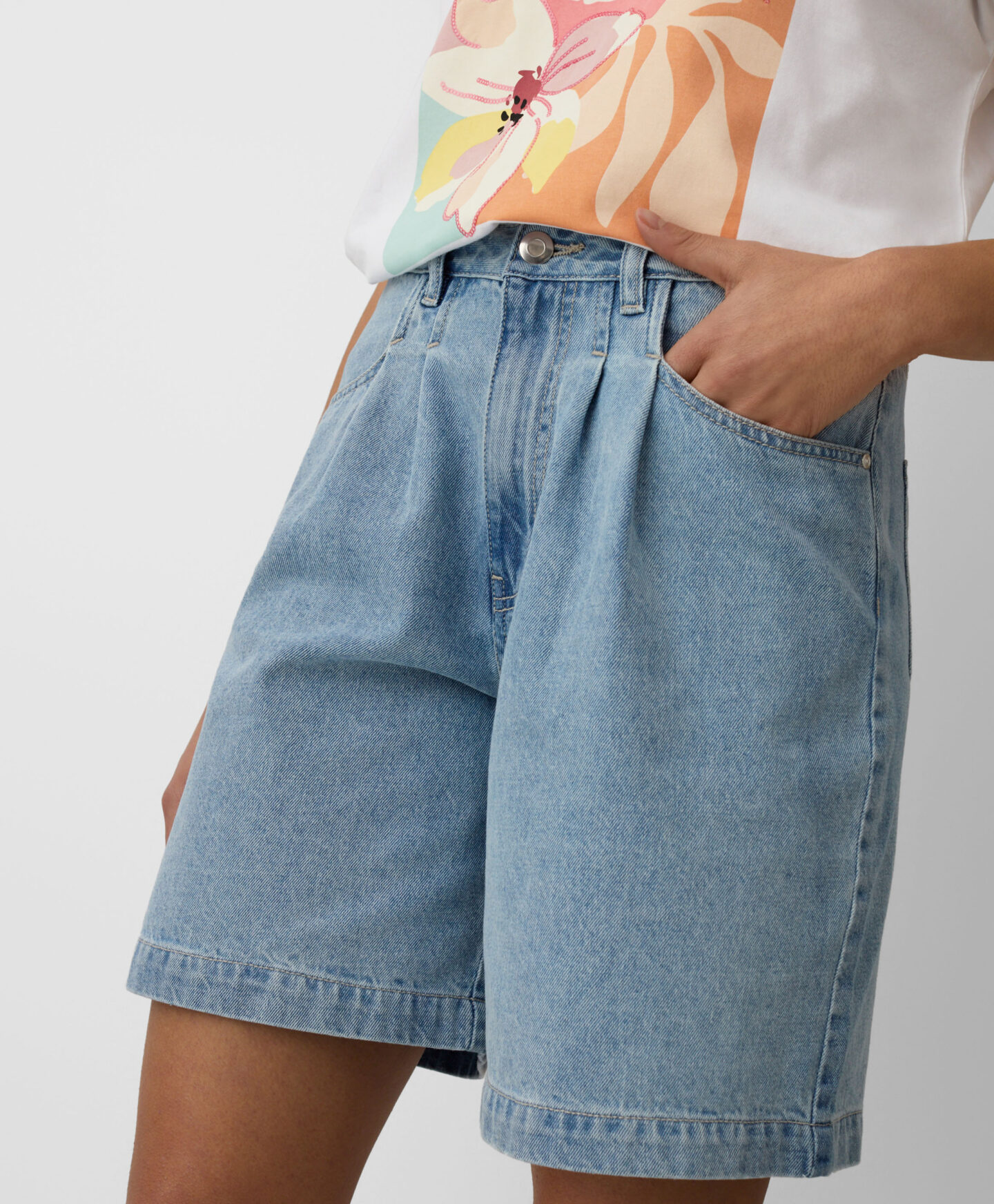 Το 100% βαμβακερό γυναικείο σορτσάκι Bermuda είναι η τέλεια επιλογή για γυναίκες που αναζητούν άνεση και κλασικό στυλ στις ζεστές μέρες. Η φαρδιά γραμμή προσφέρει απόλυτη ελευθερία κινήσεων, ενώ το ευέλικτο μήκος του ποδιού κολακεύει όλους τους σωματότυπους. Το διαχρονικό τζιν προσφέρει απόλυτη ευελιξία στο στυλ.