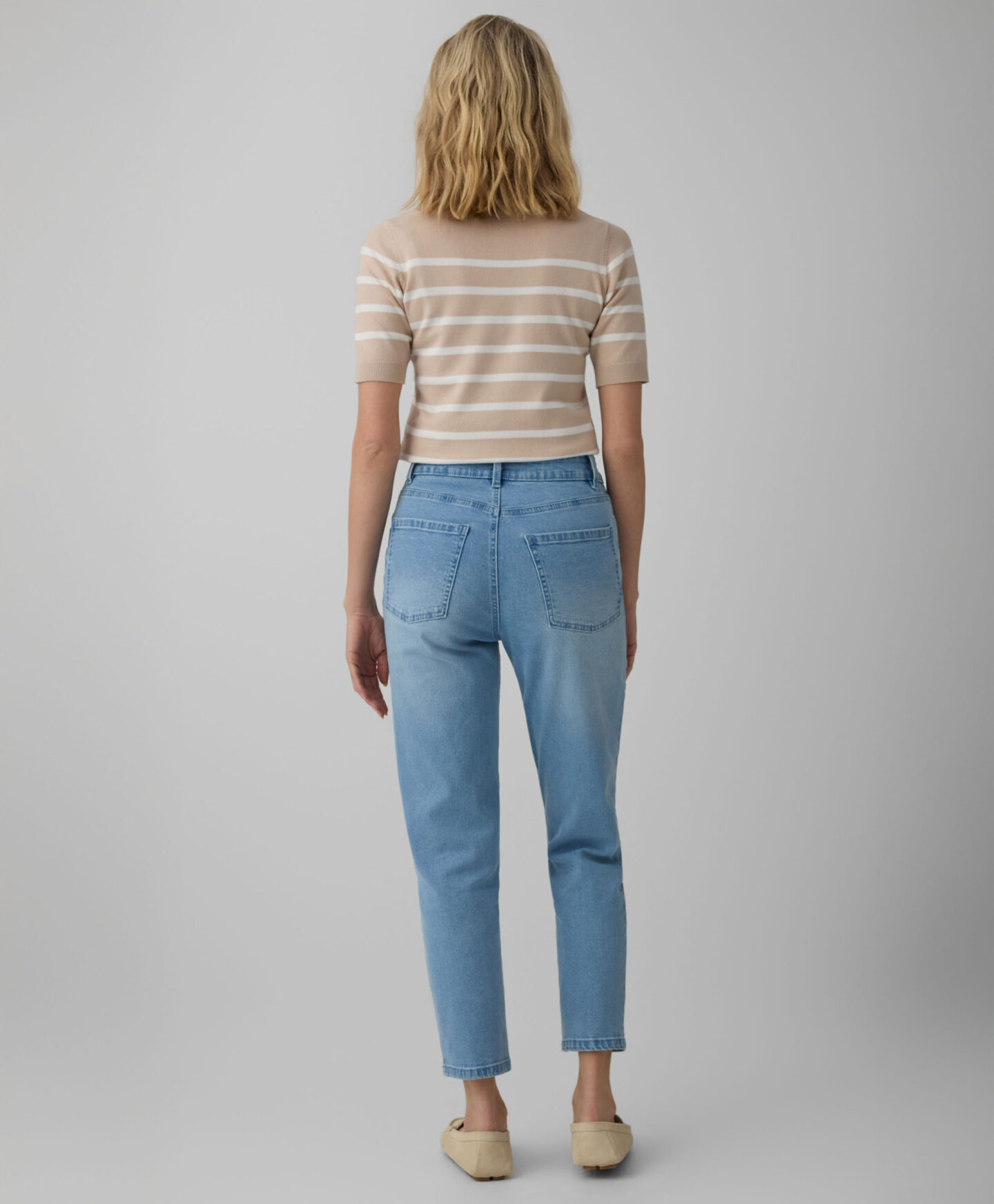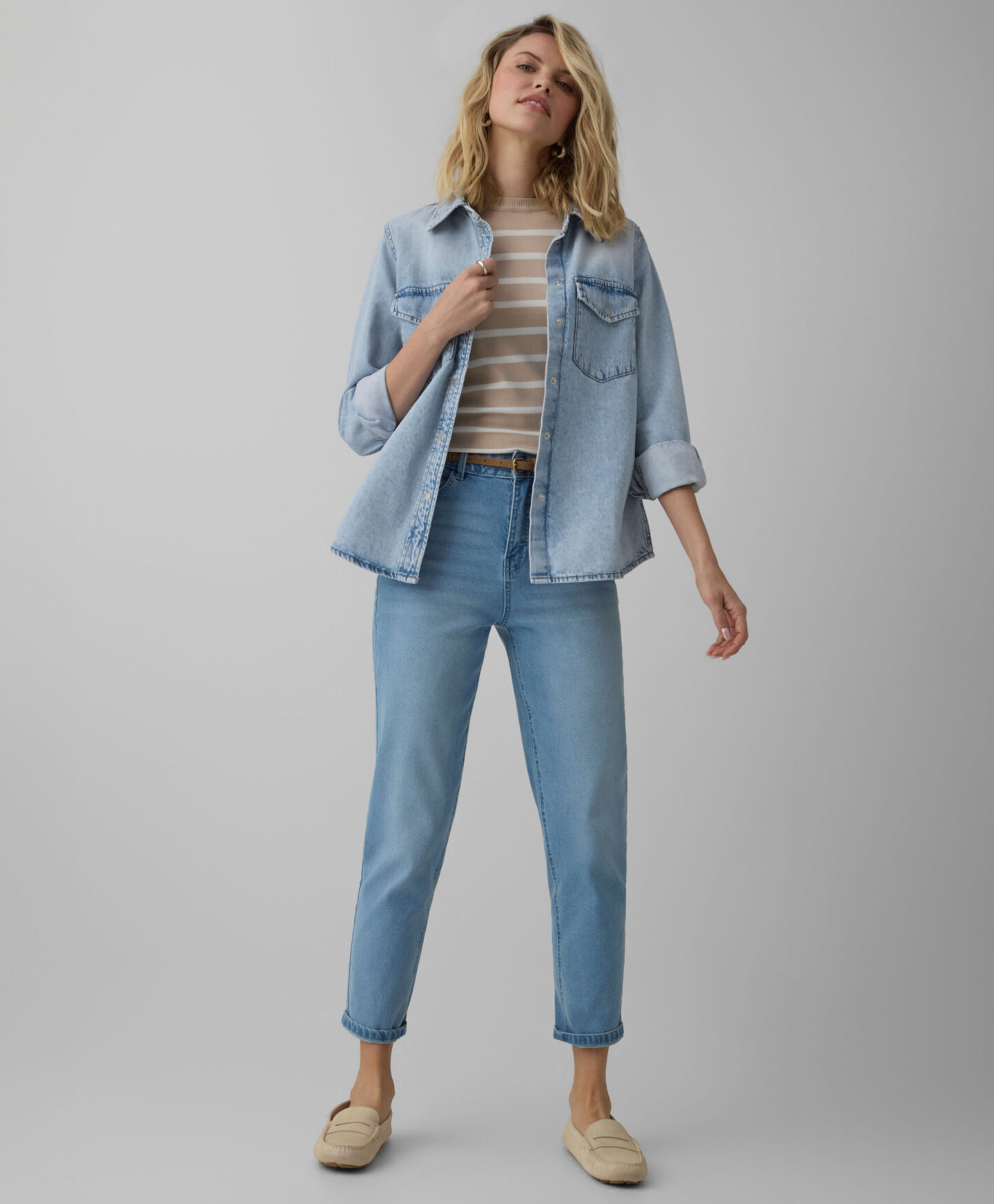 Τα γυναικεία τζιν mom-cut είναι μια cult πρόταση που συνδυάζει άνεση και στυλ. Η χαρακτηριστική ψηλή μέση διαμορφώνει τέλεια τη σιλουέτα, τονίζοντας τα καλύτερα χαρακτηριστικά σας. Η χαλαρή γραμμή εξασφαλίζει άνεση καθ’ όλη τη διάρκεια της ημέρας χωρίς να περιορίζει τις κινήσεις. Τα τζιν είναι ιδανικά για τη δουλειά, τις λιγότερο επίσημες συναντήσεις ή τις καθημερινές δραστηριότητες. Το κλασικό τζιν σε έντονο μπλε χρώμα είναι εγγύηση για ευελιξία και δυνατότητα δημιουργίας αμέτρητων συνθέσεων σε συνδυασμό με τα αγαπημένα σας ρούχα.