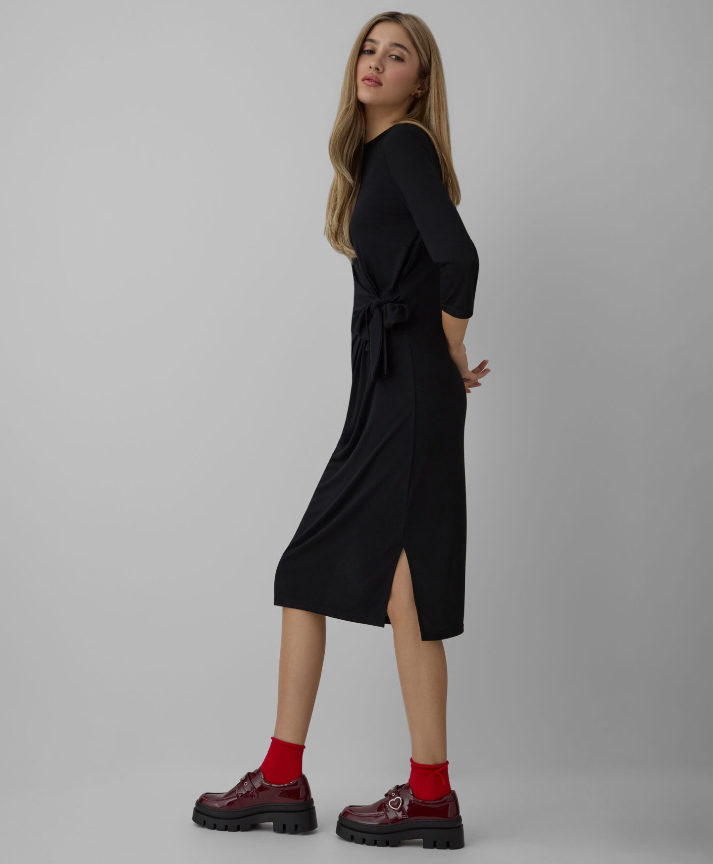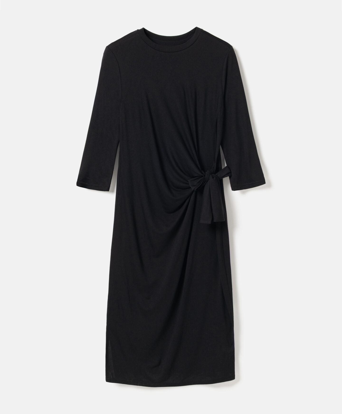 Ένα γυναικείο φόρεμα με κορδόνι, από βισκόζη, είναι μια εξαιρετική επιλογή για ειδικές περιστάσεις. Το κλασικό μαύρο χρώμα θα προσθέσει κομψότητα σε κάθε ντύσιμο. Το φόρεμα είναι απαλό στην αφή και τονίζει όμορφα τη σιλουέτα. Μπορείτε να το συνδυάσετε τόσο με κομψά ψηλοτάκουνα παπούτσια όσο και με μπότες με επίπεδη σόλα.