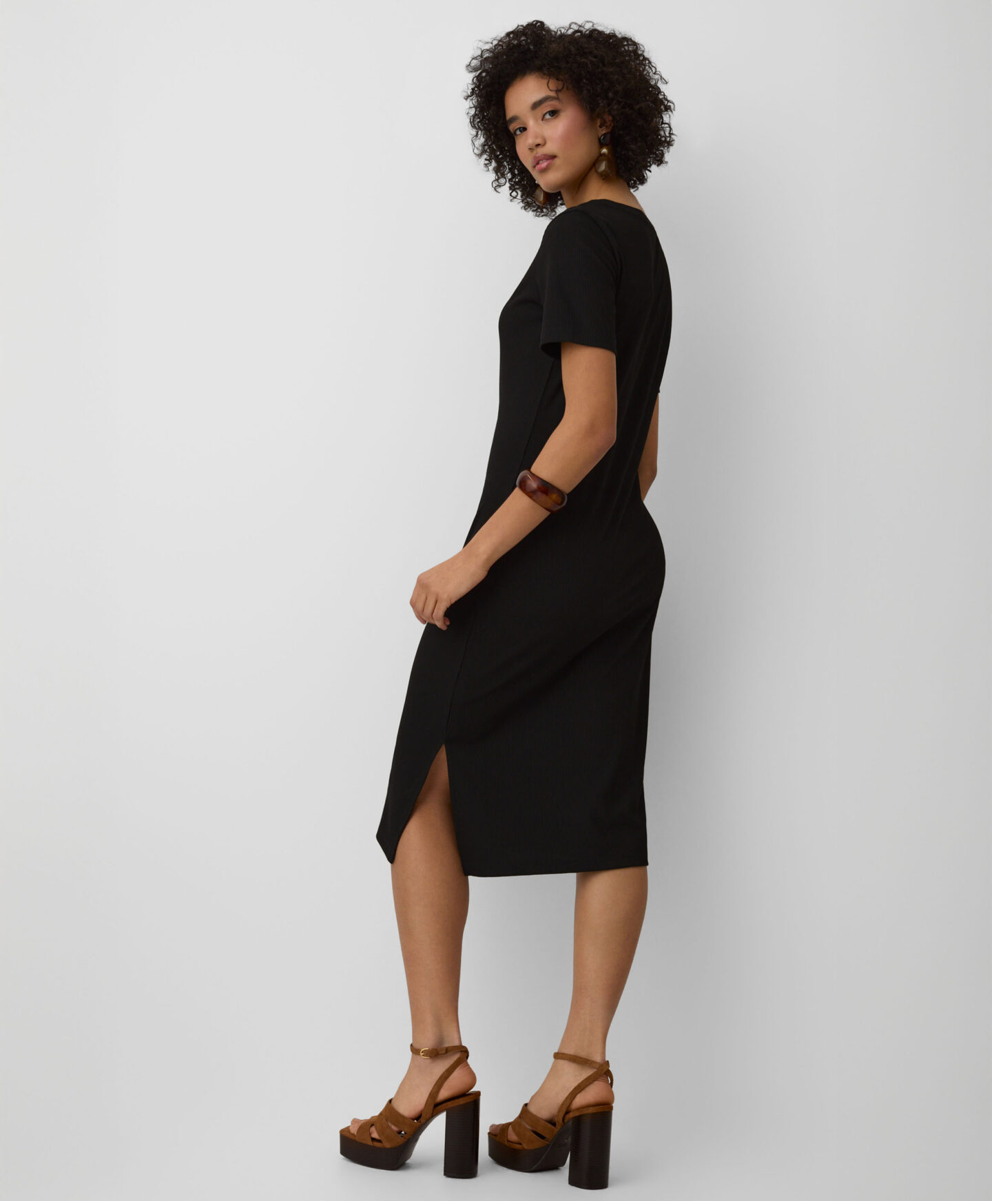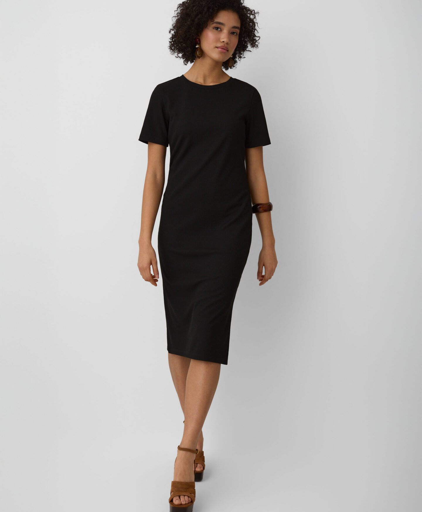 Αυτό το γυναικείο φόρεμα με λεπτές ρίγες είναι απίστευτα ευέλικτο. Το διαχρονικό μαύρο χρώμα αδυνατίζει οπτικά τη σιλουέτα, ενώ η κλασική γραμμή εξασφαλίζει μια κολακευτική εφαρμογή. Το απαλό υλικό προσφέρει απαράμιλλη άνεση. Αυτό το φόρεμα είναι ιδανικό τόσο για καθημερινή χρήση όσο και για ειδικές περιστάσεις.