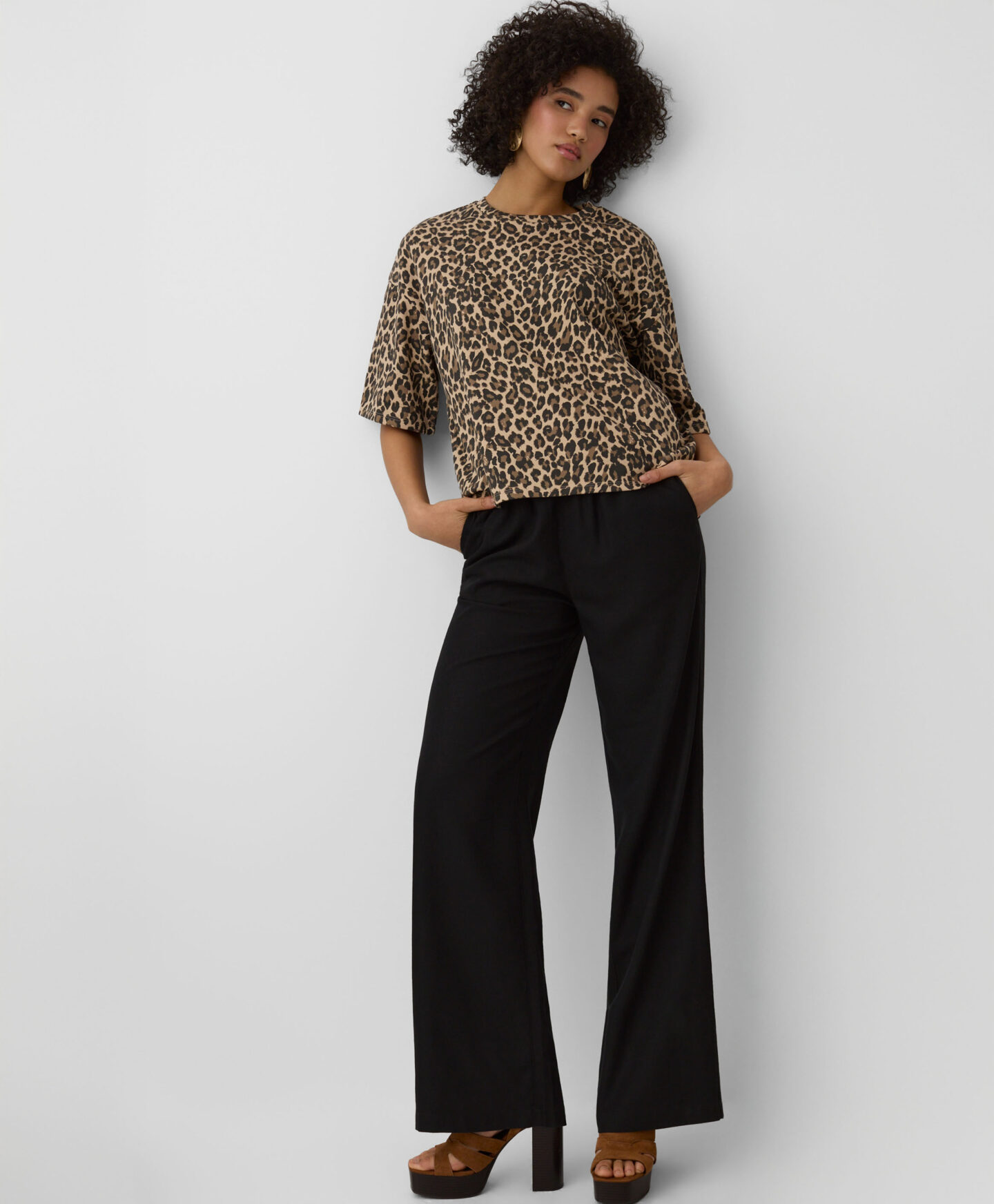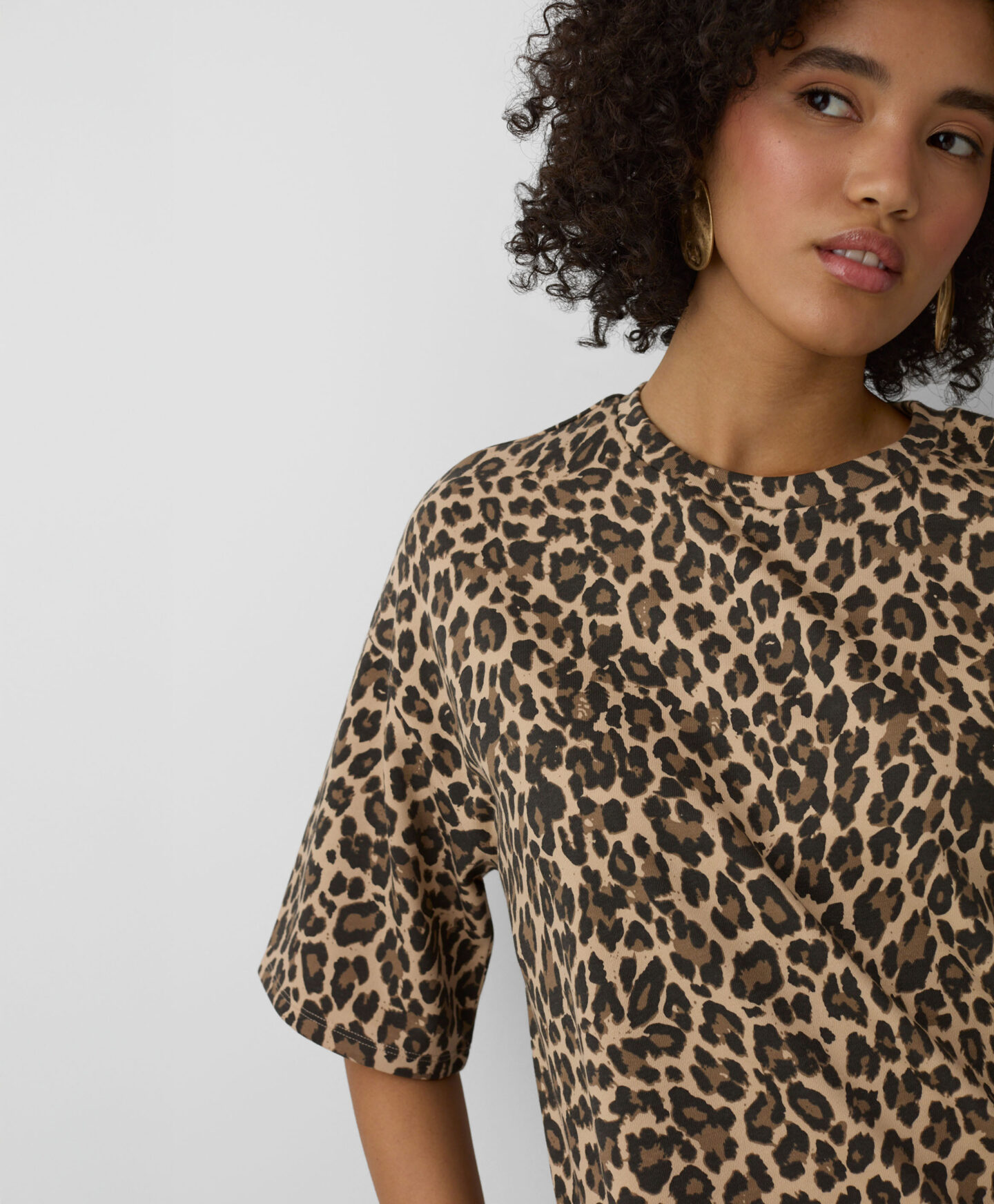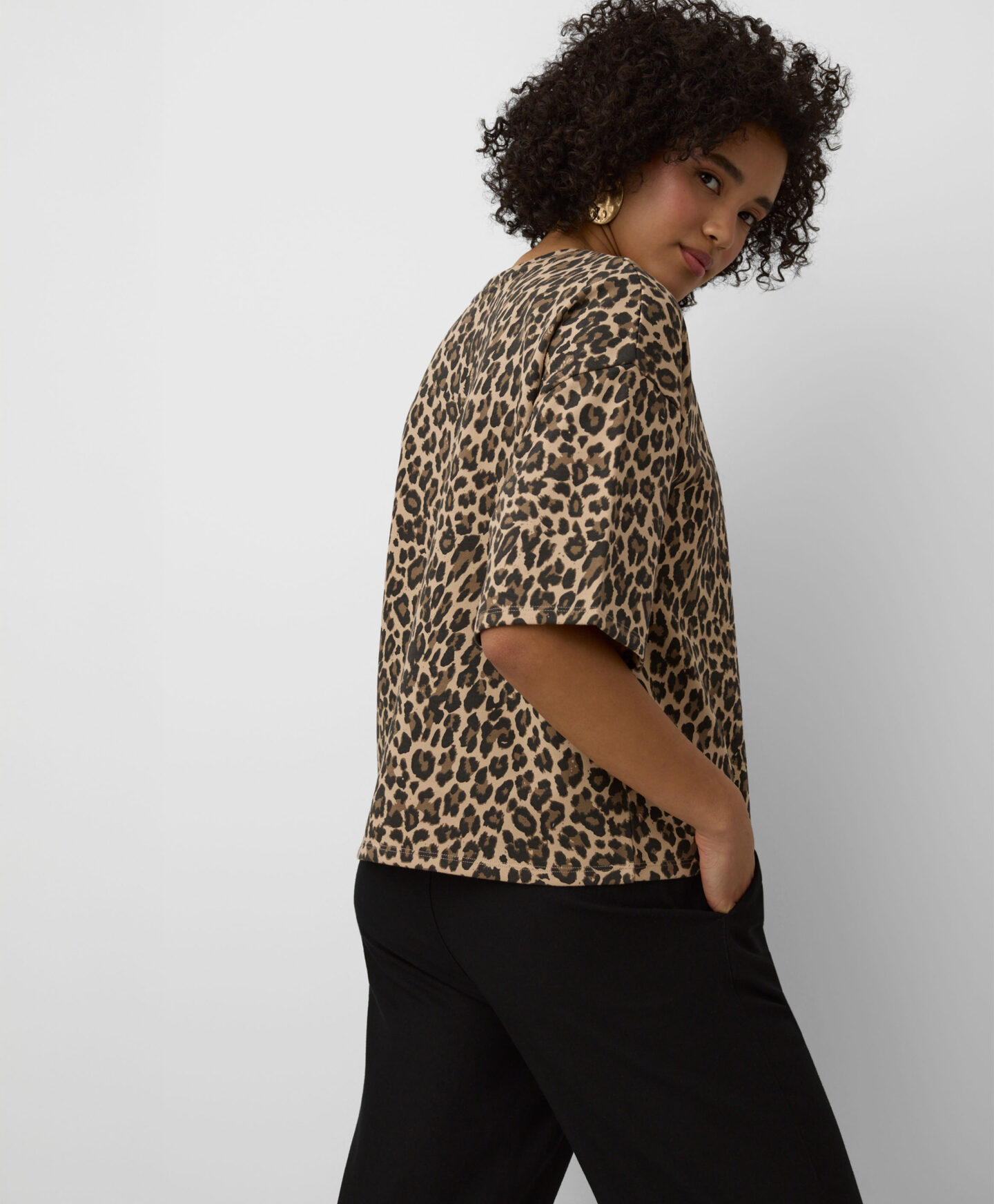 Αυτό το γυναικείο μπλουζάκι με λεοπάρ σχέδιο είναι ιδανικό για τους λάτρεις των animal prints. Η πιο κοντή και φαρδιά γραμμή του θα αρέσει σίγουρα σε κάθε λάτρη του casual στυλ. Θα φαίνεται υπέροχο σε συνδυασμό με παντελόνια μοτοσικλετιστή, φαρδιά σορτς ή τζιν.