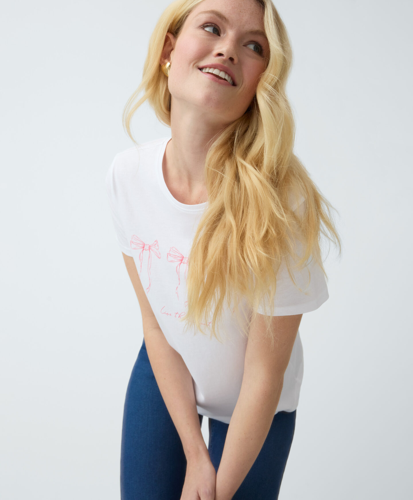 Ένα γυναικείο t-shirt από 100% βαμβάκι με τύπωμα στο μπροστινό μέρος είναι ιδανικό για όσους αγαπούν την άνεση. Το απαλό υλικό αγκαλιάζει απαλά το δέρμα σας, ενώ το ουδέτερο χρώμα σας επιτρέπει να δημιουργήσετε πολλά επιτυχημένα σύνολα. Ταιριάζει τέλεια κάτω από ένα πουλόβερ ή μια ζακέτα. Σε συνδυασμό με ένα κλασικό τζιν, δημιουργεί ένα ιδανικό σύνολο τόσο για το γραφείο όσο και για το πανεπιστήμιο.Ένα γυναικείο t-shirt από 100% βαμβάκι με τύπωμα στο μπροστινό μέρος είναι ιδανικό για όσους αγαπούν την άνεση. Το απαλό υλικό αγκαλιάζει απαλά το δέρμα σας, ενώ το ουδέτερο χρώμα σας επιτρέπει να δημιουργήσετε πολλά επιτυχημένα σύνολα. Ταιριάζει τέλεια κάτω από ένα πουλόβερ ή μια ζακέτα. Σε συνδυασμό με ένα κλασικό τζιν, δημιουργεί ένα ιδανικό σύνολο τόσο για το γραφείο όσο και για το πανεπιστήμιο.