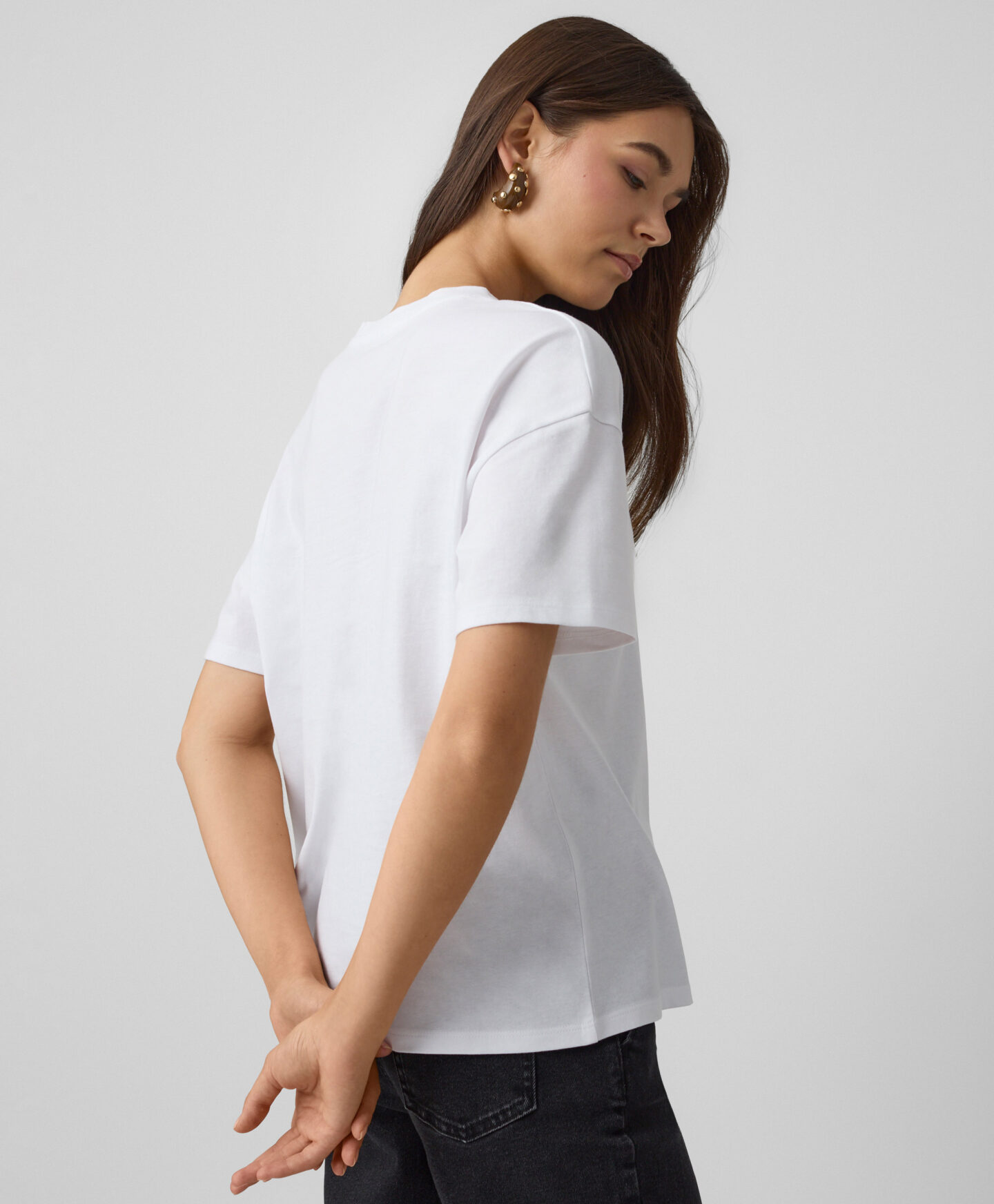 Το γυναικείο t-shrit με φιόγκο, από 100% βαμβάκι, είναι ιδανικό τόσο για καθημερινή χρήση όσο και για ειδικές περιστάσεις. Το υλικό είναι φιλικό προς το δέρμα και εγγυάται άνεση καθ’ όλη τη διάρκεια της ημέρας. Ο φιόγκος στο μπροστινό μέρος είναι ένα διακριτικό αλλά εντυπωσιακό στοιχείο που προσθέτει γοητεία σε κάθε ντύσιμο.