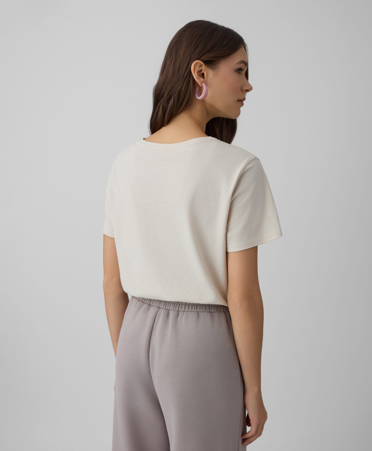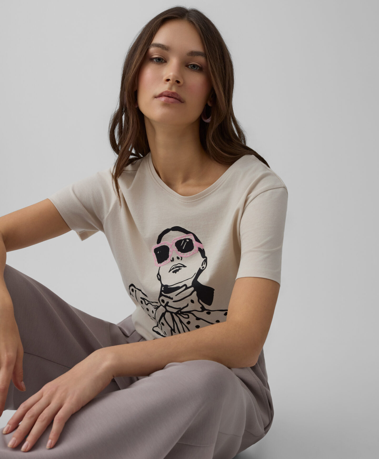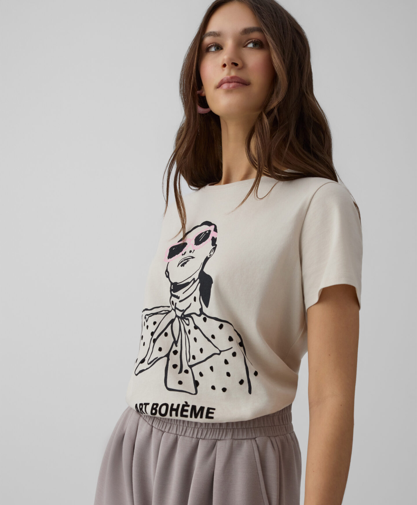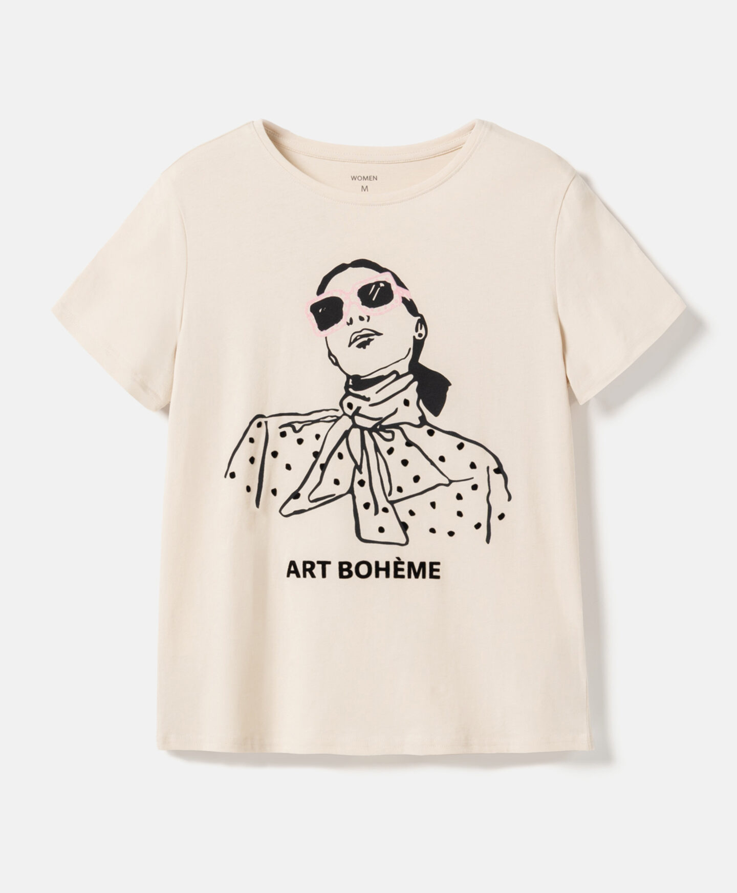 Το γυναικείο t-shirt από 100% βαμβάκι με κοντά μανίκια και τύπωμα είναι μια κομψή επιλογή για όσους αγαπούν τα μοναδικά σχέδια. Το φυσικό βαμβάκι προσφέρει μια ευχάριστη αίσθηση στο δέρμα και είναι αναπνεύσιμο, καθιστώντας το t-shirt ιδανικό για διάφορα σύνολα.