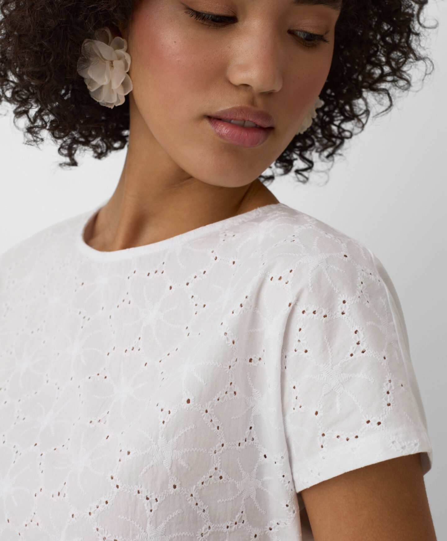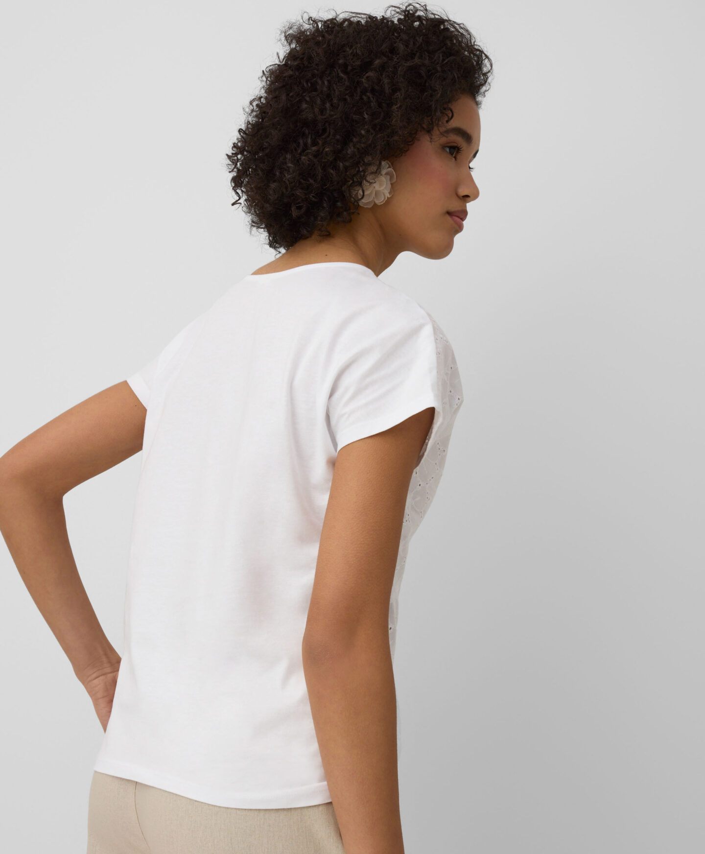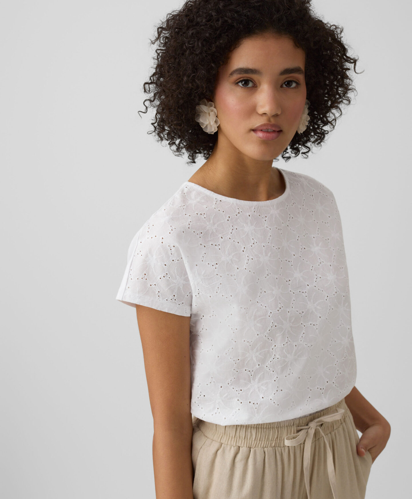 Αυτό το γυναικείο t-shirt από 100% βαμβάκι με κέντημα στο μπροστινό μέρος επιτρέπει στο δέρμα να αναπνέει. Είναι άνετο και κολακεύει τη σιλουέτα. Η κλασική γραμμή και τα απαλά χρώματα το καθιστούν ιδανική βάση για πολλές επιτυχημένες εμφανίσεις. Ιδανικό για να το συνδυάσετε με τα αγαπημένα σας τζιν, σορτς ή κομψά παντελόνια τσιγάρο.