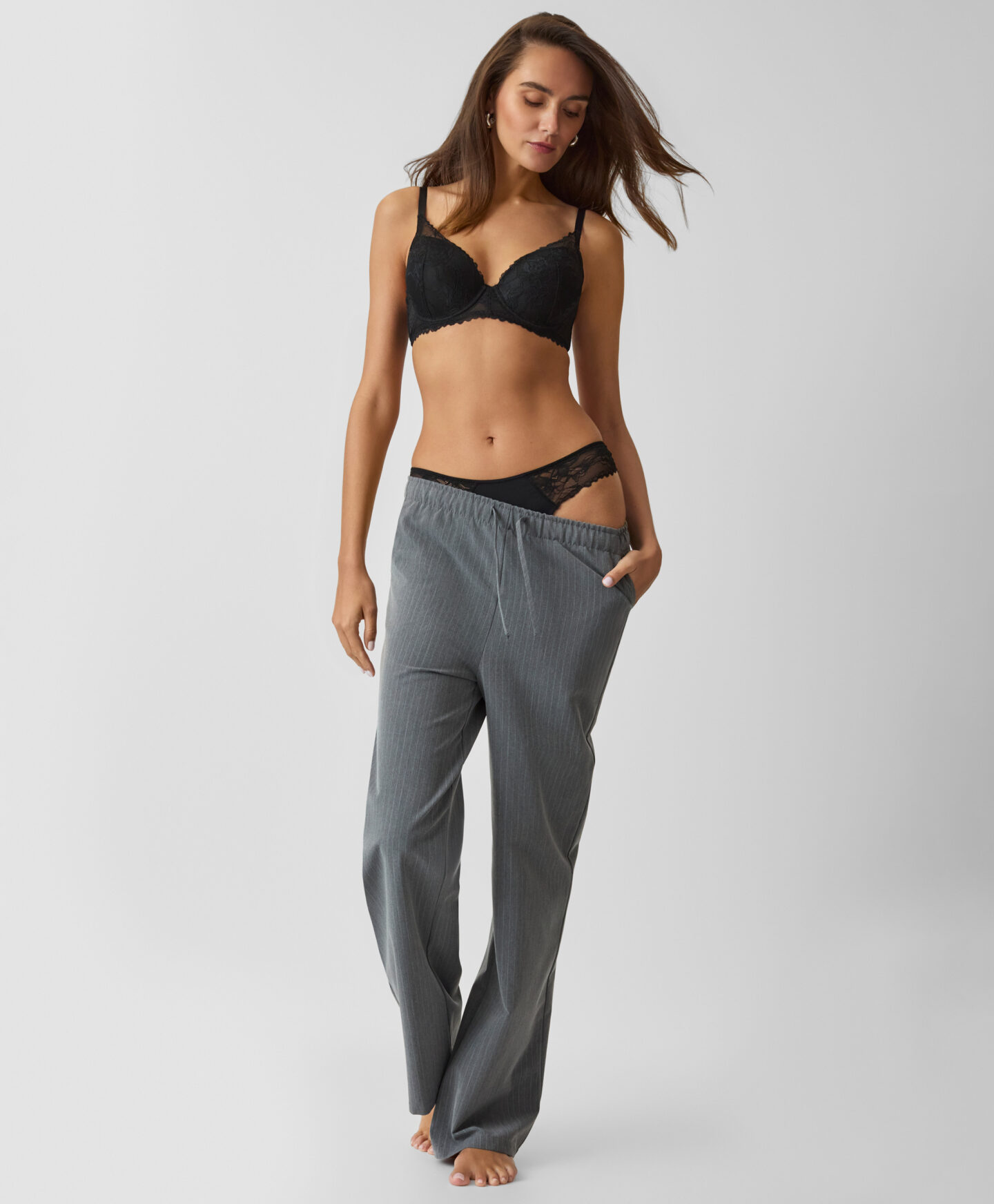 Το μπαλκονέ σουτιέν από δαντέλα με βολάν είναι ένα εξαιρετικά θηλυκό και κομψό εσώρουχο που συνδυάζει κλασική φόρμα με ρομαντικές λεπτομέρειες. Αυτός ο τύπος σουτιέν διαθέτει ανοιχτή λαιμόκοψη, αναδεικνύοντας όμορφα το στήθος και προσθέτοντας μια διακριτική γοητεία σε κάθε ντύσιμο. Ταιριάζει τέλεια με φορέματα με βαθιά κοψίματα.