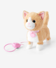 Η διαδραστική μπεζ γάτα με λουρί είναι ένα παιχνίδι που επιτρέπει στα μικρότερα παιδιά να πραγματοποιήσουν το όνειρό τους να φροντίζουν ένα κατοικίδιο. Η γάτα κινείται κατά τη διάρκεια των βόλτων με λουρί, κουνάει την ουρά της ενθαρρύνοντας το παιχνίδι και την αλληλεπίδραση. Το απαλό τρίχωμα και ο φιλικός ήχος νιαούρισμα κερδίζουν γρήγορα τις καρδιές των παιδιών.