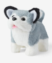 Ο διαδραστικός γκρι και λευκός σκύλος έχει σχεδιαστεί για να προσφέρει στα παιδιά συναρπαστική διασκέδαση. Με επιπλέον εφέ, εισάγει ένα στοιχείο έκπληξης και ζωντανεύει τις καθημερινές δραστηριότητες. Η βελούδινη μορφή του το καθιστά εξίσου κατάλληλο για αγκαλιές, καθώς και για τη δημιουργία δικών σας δημιουργικών ιστοριών. Το κουτάβι κινείται και μπορεί να γαβγίζει.
