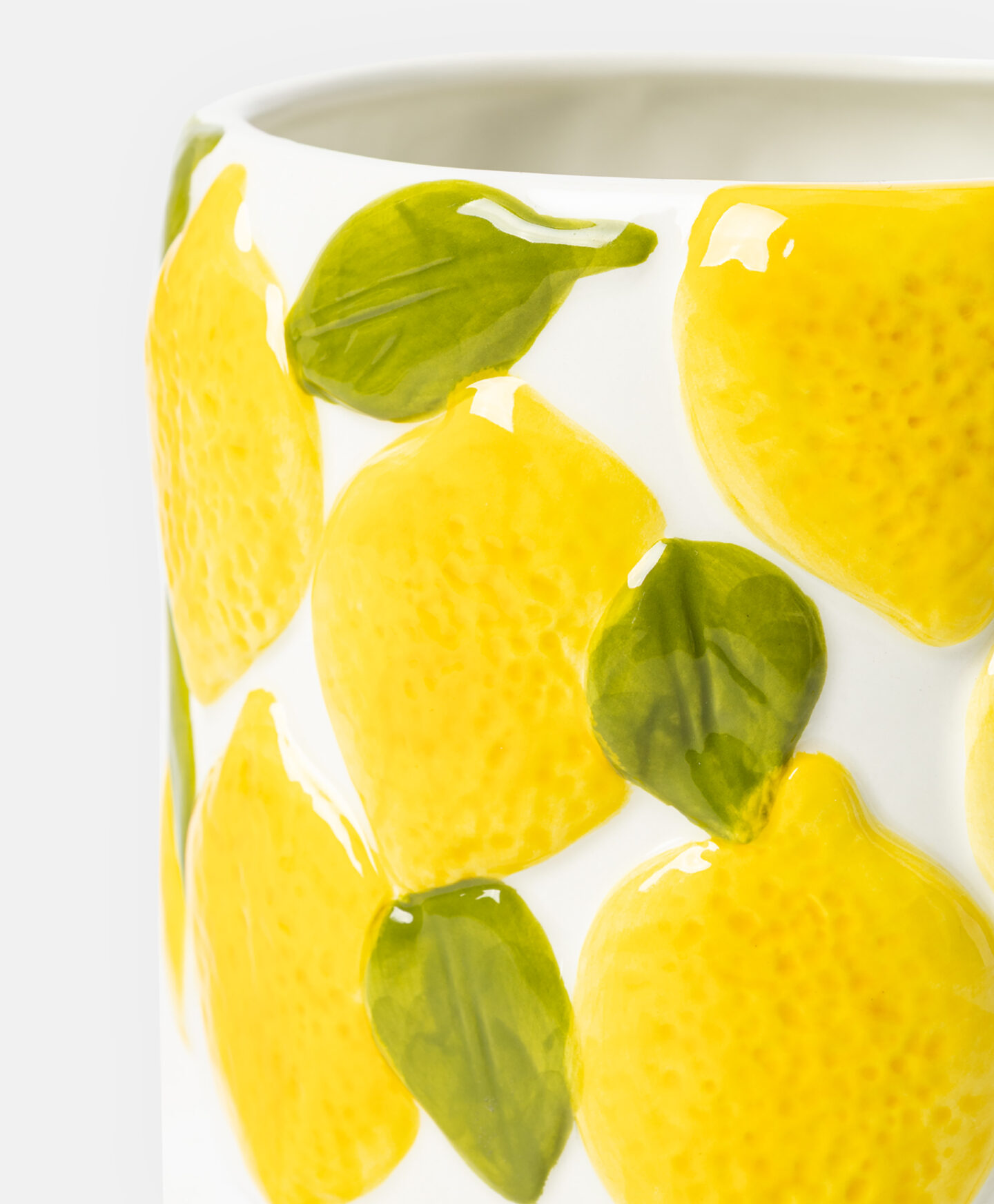 Αυτό το κεραμικό γλαστράκι, με το ανάγλυφο σχέδιο λεμονιών, τραβάει πραγματικά τα βλέμματα. Είναι ιδανική για την καλλιέργεια μικρών φυτών σε γλάστρες, παχύφυτων, βοτάνων ή λουλουδιών, είτε στο περβάζι, είτε σε ράφι, είτε στο τραπέζι. Ο όμορφος σχεδιασμός της, εμπνευσμένος από το μεσογειακό τοπίο, θα συμπληρώσει κάθε εσωτερικό χώρο. Η γλάστρα είναι ανθεκτική και καθαρίζεται εύκολα.
