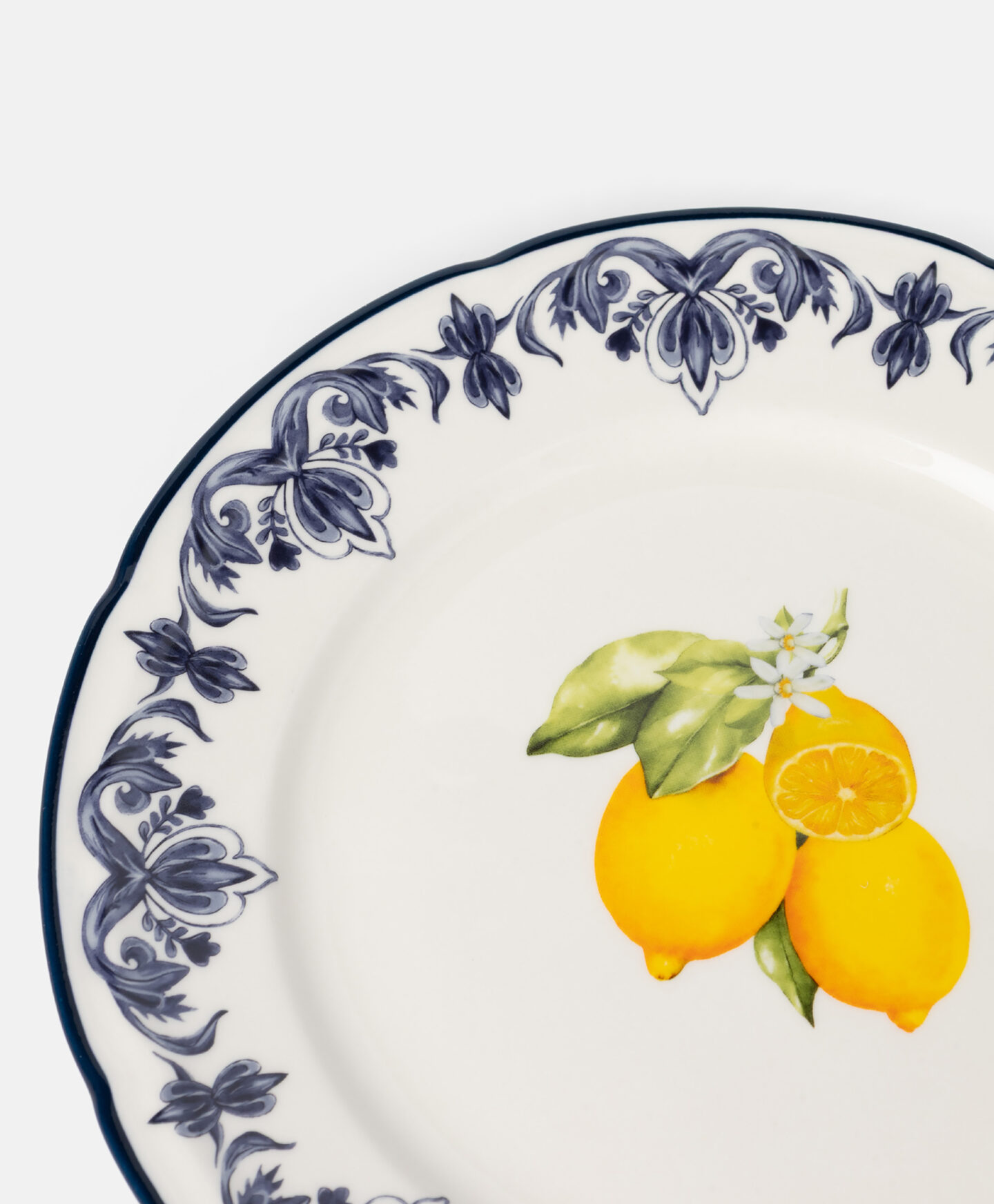 Αυτό το πιάτο επιδόρπιο από κεραμικό με σχέδιο λεμονιών αποτελεί μια κομψή προσθήκη στα σερβίτσια σας. Το υπέροχο σχέδιο, εμπνευσμένο από το μεσογειακό τοπίο, προσδίδει στο πιάτο έναν μοναδικό χαρακτήρα, καθιστώντας το όχι μόνο ένα πρακτικό πιάτο αλλά και ένα διακοσμητικό στοιχείο στο τραπέζι. Το κεραμικό είναι ανθεκτικό, ανθεκτικό στις φθορές και εύκολο στον καθαρισμό. Το πιάτο είναι ιδανικό για το σερβίρισμα επιδορπίων, κέικ, φρούτων και άλλων λιχουδιών.
