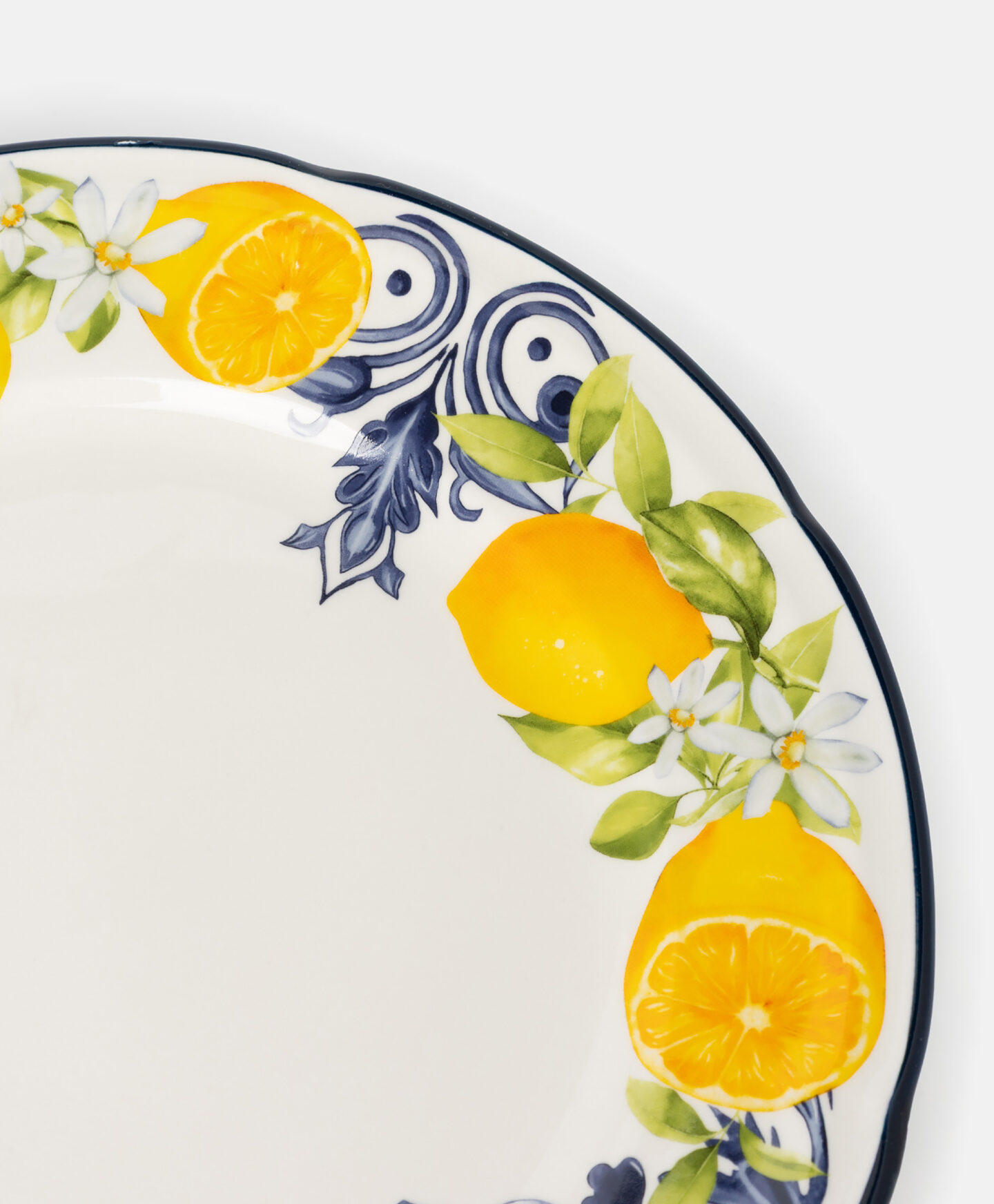 Αυτό το κεραμικό πιάτο με σχέδιο λεμονιών θα ενθουσιάσει όλους στο σπίτι σας. Είναι ανθεκτικό, καθαρίζεται εύκολα και είναι ανθεκτικό στις γρατσουνιές. Το όμορφο σχέδιο, εμπνευσμένο από τη μεσογειακή φύση, προσδίδει στον πιάτο έναν μοναδικό χαρακτήρα, καθιστώντας τον όχι μόνο ένα πρακτικό πιάτο αλλά και ένα όμορφο διακοσμητικό στοιχείο στο τραπέζι. Ιδανικό για το σερβίρισμα κύριων πιάτων.