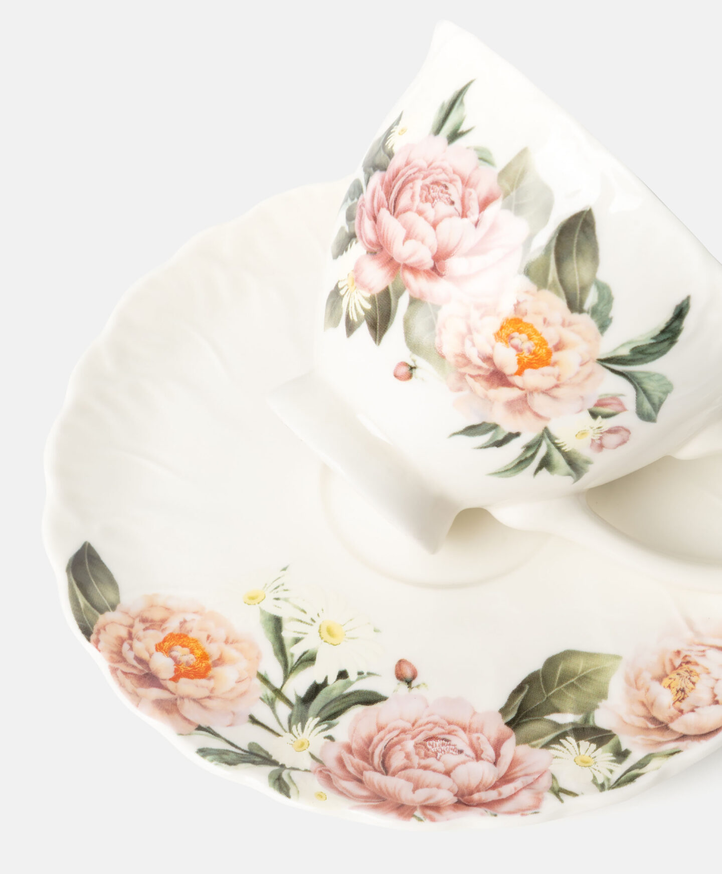 Η κεραμική κούπα με πιατάκι με floral σχέδιο είναι κατασκευασμένη από ανθεκτική πορσελάνη New Bone China. Αποτελεί εξαιρετική επιλογή τόσο για καθημερινή χρήση όσο και για ειδικές περιστάσεις. Το ανοιξιάτικο σχέδιο θα προσθέσει γοητεία σε κάθε στιγμή με το αγαπημένο σας ρόφημα. Η κούπα είναι ιδανική για να σερβίρετε αρωματικό καφέ, τσάι λεμονιού ή ζεστή σοκολάτα. Η προσφορά μας περιλαμβάνει και ασορτί σερβίτσια με το ίδιο σχέδιο.