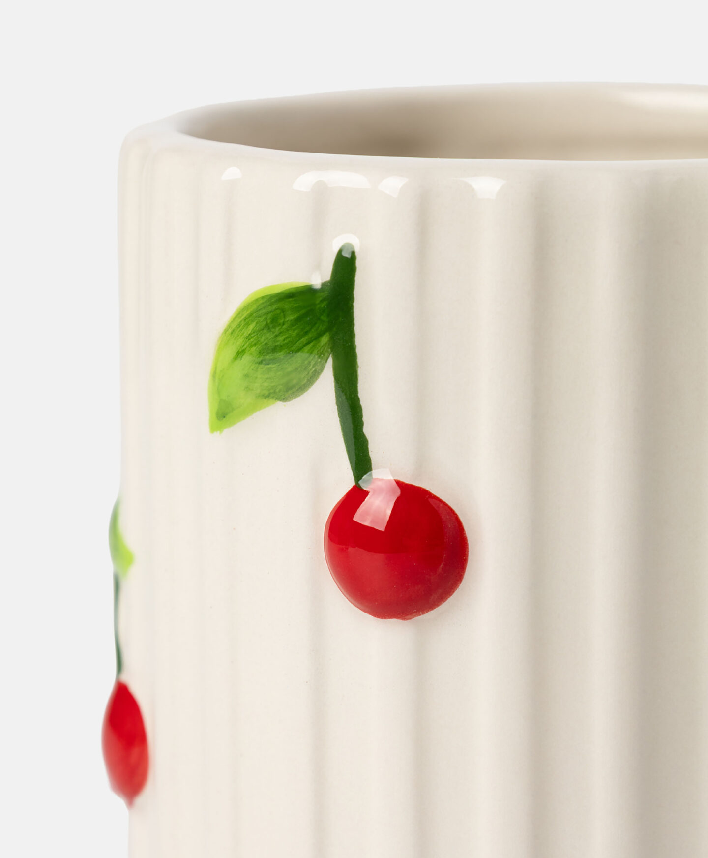 Αυτή η θήκη οδοντόβουρτσας με σχέδιο κερασιών θα διατηρήσει τον νιπτήρα σας οργανωμένο. Κατασκευασμένη από ανθεκτικό δολομίτη, χωράει τις οδοντόβουρτσες μιας οικογένειας. Είναι εύκολη στον καθαρισμό και ανθεκτική στην καθημερινή χρήση. Θα βρείτε περισσότερα αξεσουάρ μπάνιου με αυτό το σχέδιο στην επιλογή μας.