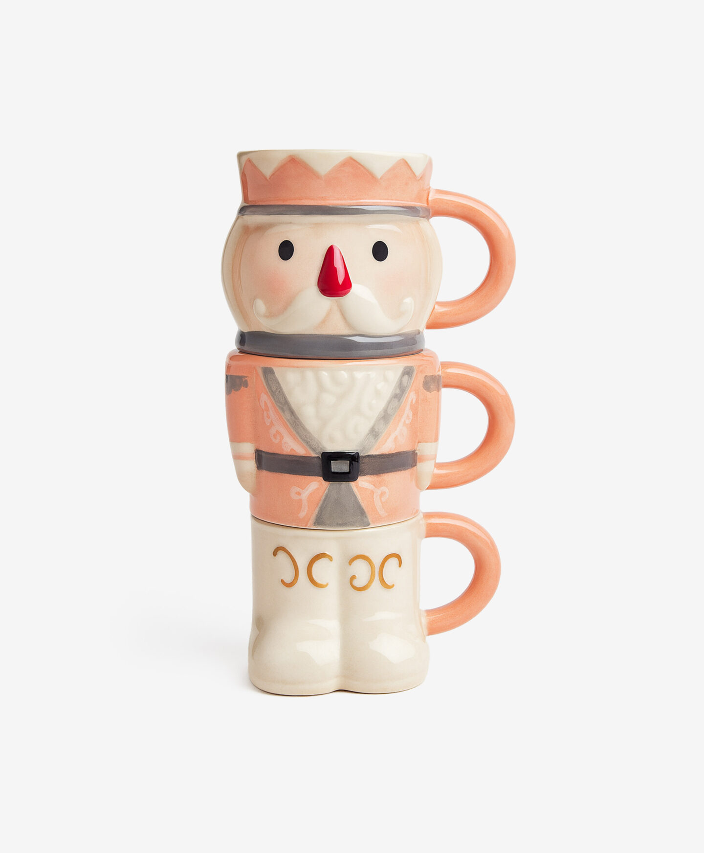 Η κούπα σε σχήμα καρυοθραύστη συνδυάζει την πρακτικότητα με έναν παραμυθένιο χαρακτήρα. Οι προσεκτικά σχεδιασμένες λεπτομέρειες και τα παστέλ χρώματα την κάνουν να μοιάζει με ένα μικρό ειδώλιο βγαλμένο κατευθείαν από ένα Χριστουγεννιάτικο παραμύθι. Αυτό το σκεύος φέρνει ένα χαμόγελο με κάθε γουλιά καφέ, τσαγιού ή ζεστής σοκολάτας.