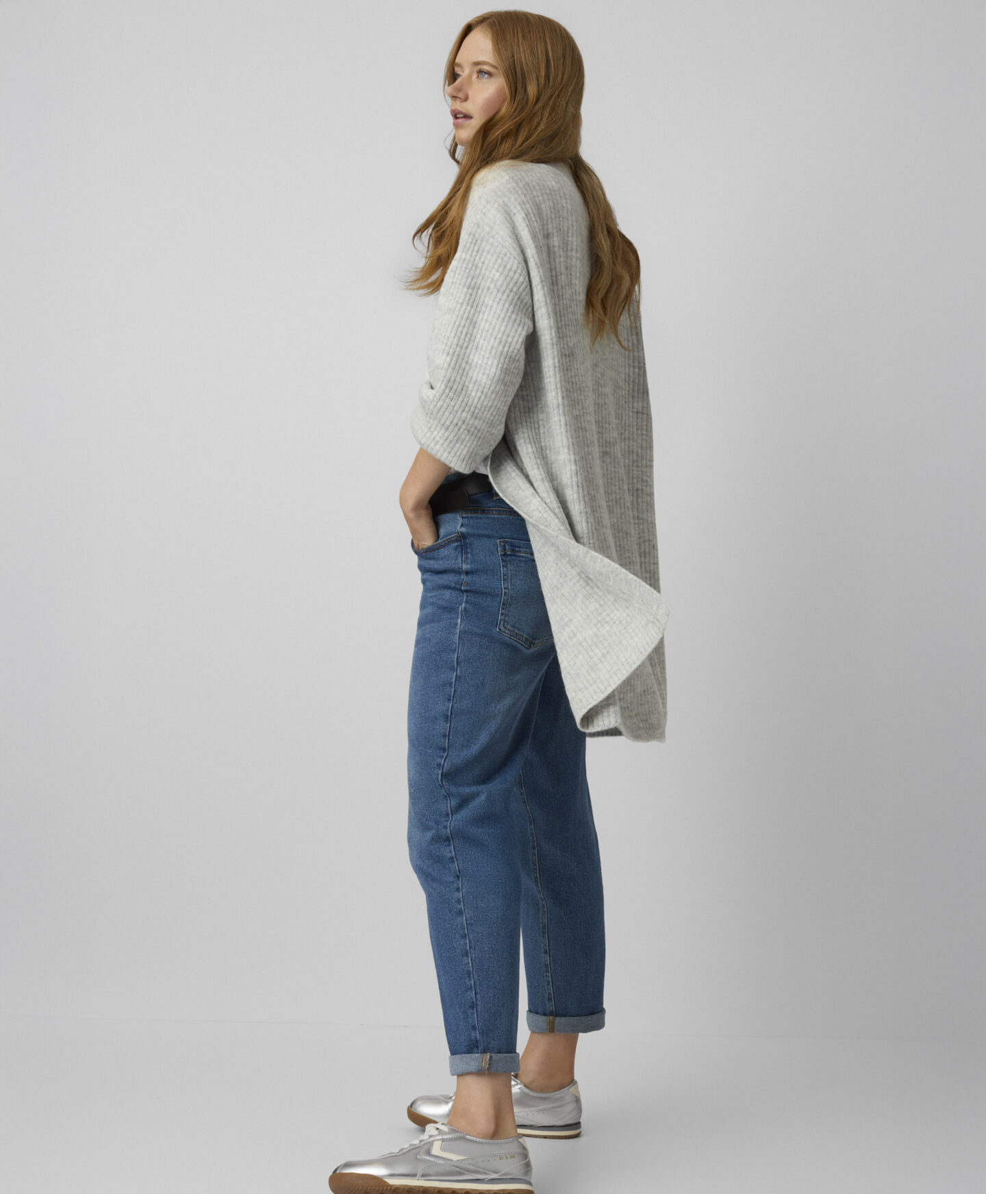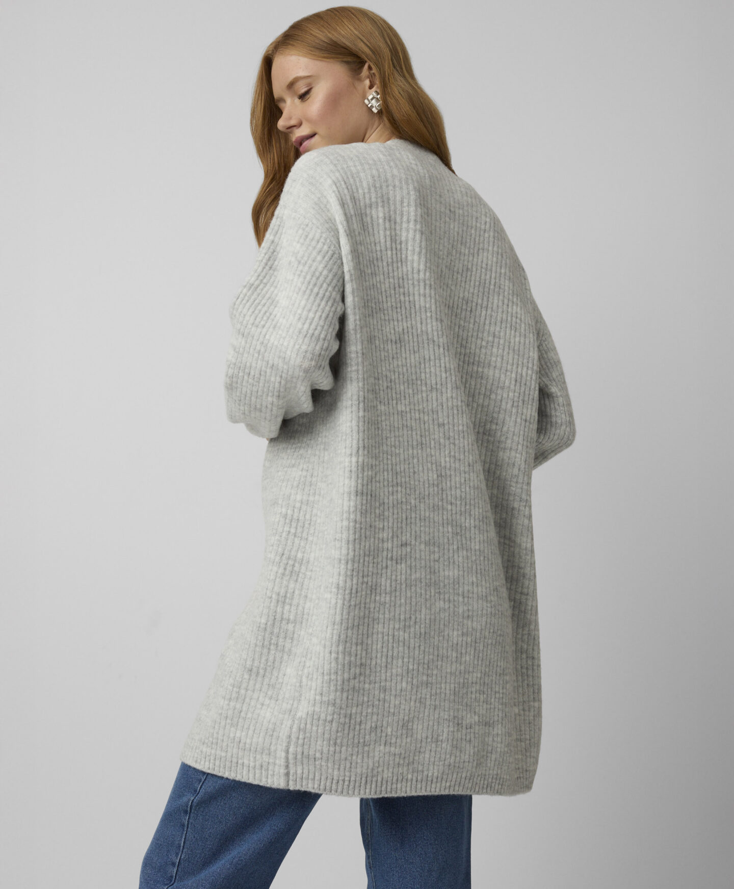 Μια μακριά γκρι γυναικεία ζακέτα είναι ιδανική για κάθε περίσταση. Προσφέρει ζεστασιά και κομψή εμφάνιση στις πιο δροσερές μέρες, συνδυάζοντας όμορφα με διάφορα στοιχεία της ντουλάπας, από φορέματα μέχρι παντελόνια. Η φαρδιά γραμμή της ζακέτας ταιριάζει σε κάθε σωματότυπο, εξασφαλίζοντας άνεση και ελευθερία κινήσεων.
