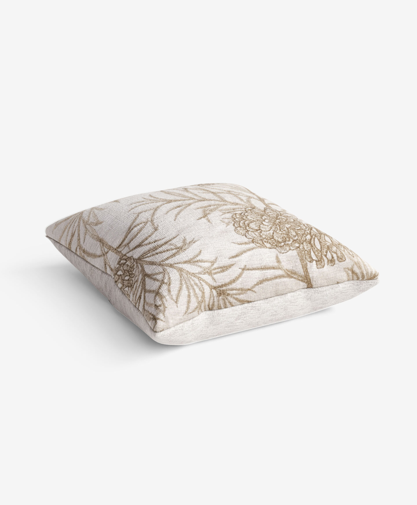 Το μαξιλάρι με θέμα το δάσος είναι ένα αξεσουάρ που τραβά αμέσως την προσοχή με λεπτομέρειες εμπνευσμένες από τη φύση. Τα κουκουνάρια και τα κλαδιά σε απαλούς χρωματισμούς του προσδίδουν κομψότητα, ενώ ταιριάζουν απόλυτα στην ζεστή ατμόσφαιρα του σαλονιού ή της κρεβατοκάμαρας.