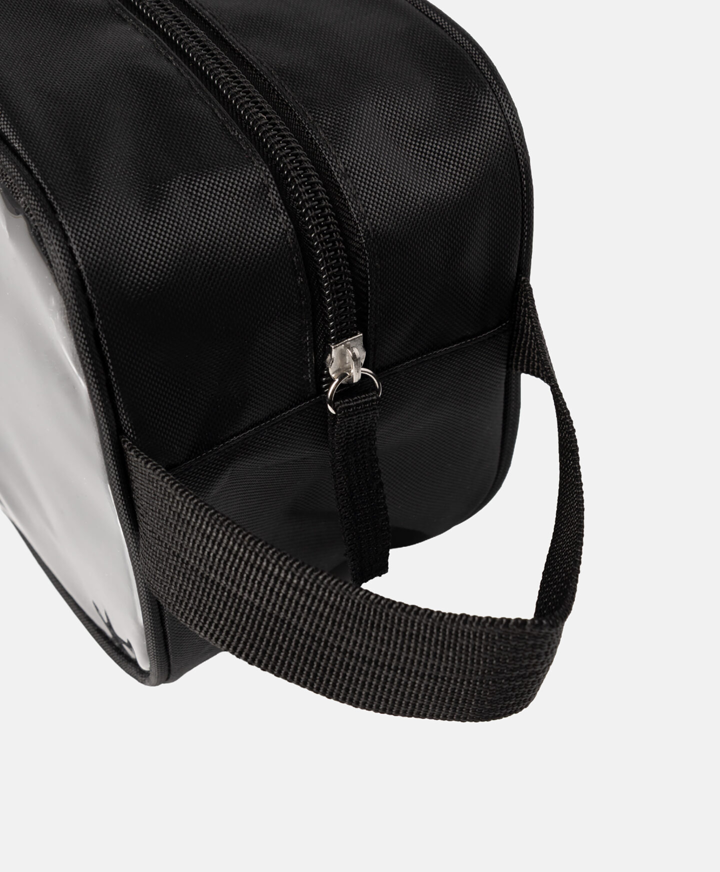 Αυτή η μαύρη τσάντα καλλυντικών είναι ιδανική για κάθε ταξίδι. Οι διαφανείς πλευρές σας επιτρέπουν να εντοπίσετε γρήγορα το προϊόν που χρειάζεστε. Κατασκευασμένη από υλικό υψηλής ποιότητας, προστατεύει τις υπόλοιπες αποσκευές σας από τυχόν διαρροές σαμπουάν ή λαδιού.