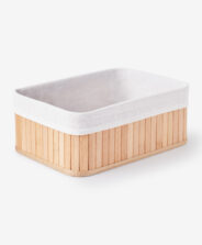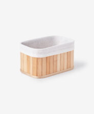 Το μεγάλο κουτί από μπαμπού είναι ιδανικό για το μπάνιο. Είναι μια πρακτική και κομψή λύση για την αποθήκευση καλλυντικών ή μικρών αντικειμένων. Το φυσικό μπαμπού προσδίδει ζεστασιά στο εσωτερικό. Επιπλέον, είναι ανθεκτικό στην υγρασία, καθιστώντας το ιδανικό για τις συνθήκες του μπάνιου. Διατίθενται και άλλα μεγέθη.