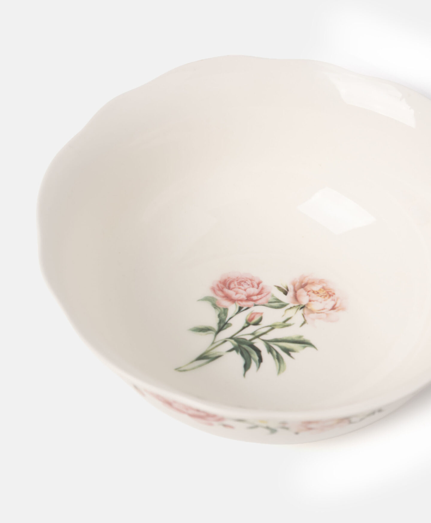 Ένα μικρό κεραμικό μπολ σαλάτας με floral σχέδιο που μαγεύει με το σχεδιασμό του. Κατασκευασμένο από πορσελάνη New Bone China, έχει κρεμώδες λευκό χρώμα και διακριτική λάμψη. Το μπολ είναι μια εξαιρετική επιλογή για όσους αναζητούν κομψά επιτραπέζια σκεύη σε λογική τιμή. Στην προσφορά μας διατίθενται και ταιριαστά πιάτα και τσαγιέρα.