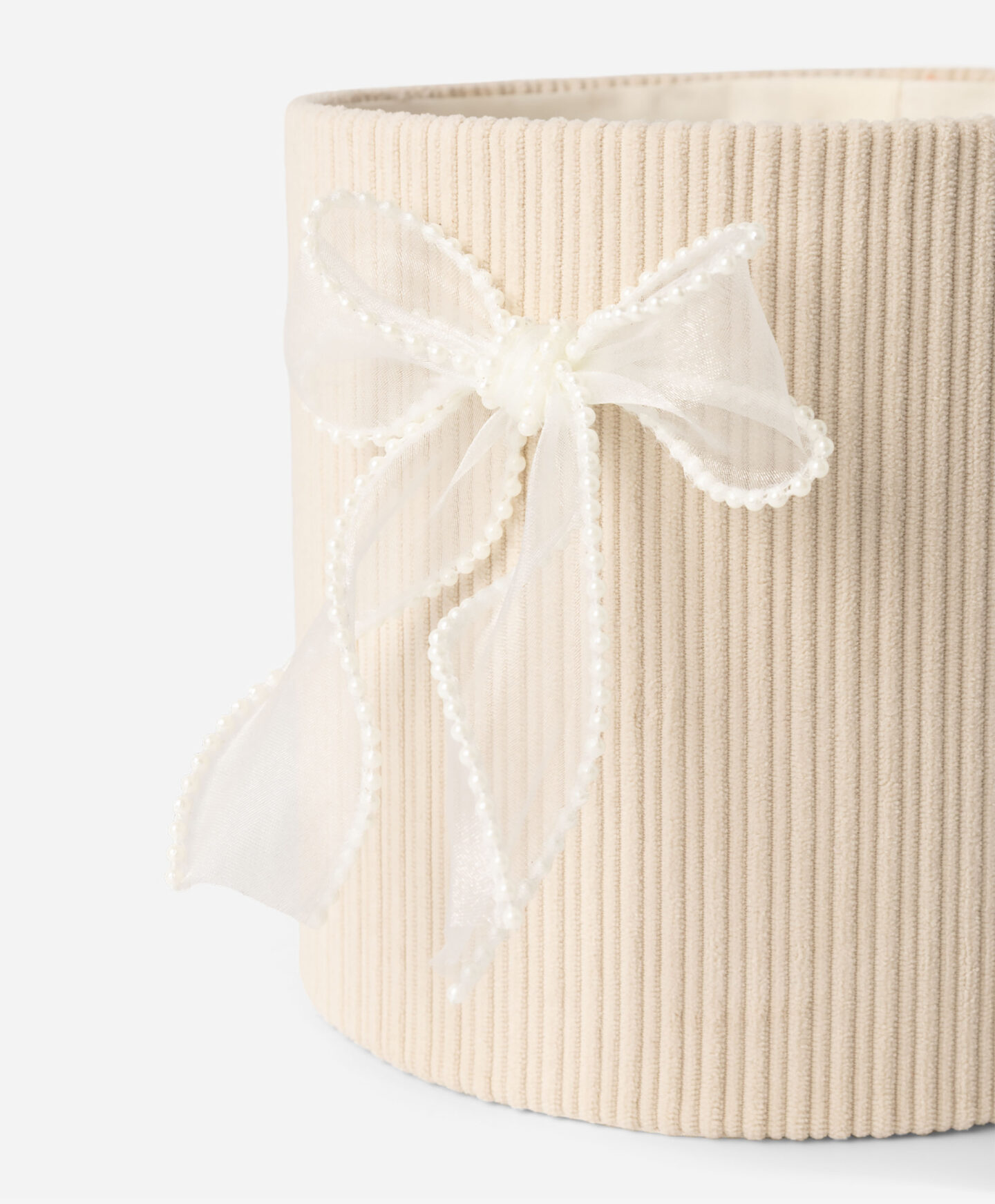 Το μικρό στρογγυλό κουτί με φιόγκο είναι μια διακριτική προσθήκη σε κάθε δωμάτιο. Είναι ιδανικό για την αποθήκευση μικρών αντικειμένων όπως κοσμήματα, κλειδιά ή άλλα μικροαντικείμενα, ή ως διακοσμητικό. Η απουσία καπακιού επιτρέπει γρήγορη πρόσβαση στο περιεχόμενο. Ο κομψός σχεδιασμός του σημαίνει ότι μπορείτε να το τοποθετήσετε τόσο σε ένα κομοδίνο στην κρεβατοκάμαρα όσο και σε ένα γραφείο στο γραφείο.
