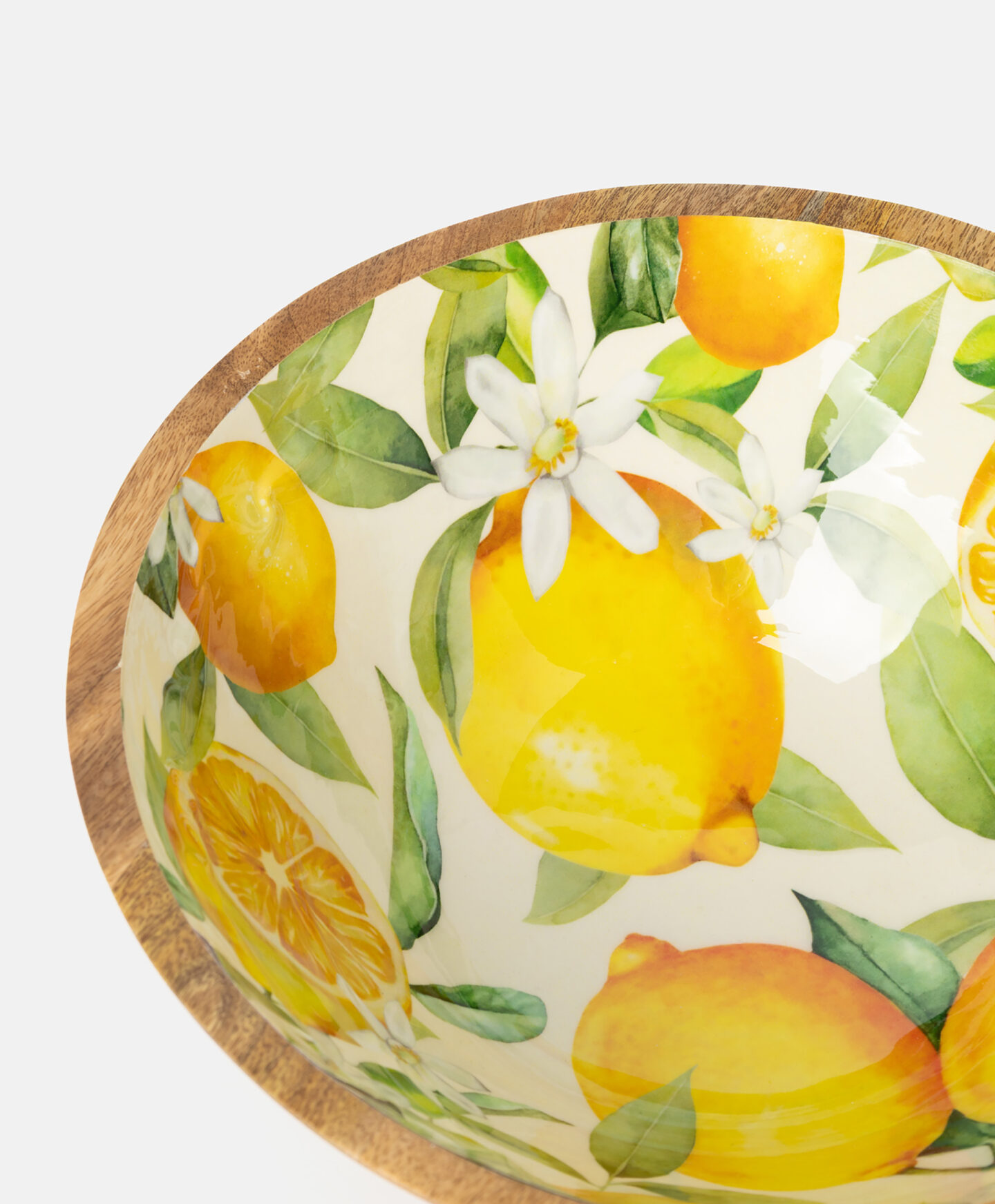 Αυτό το μπολ σερβιρίσματος από ξύλο μάνγκο διαθέτει ένα γοητευτικό μοτίβο λεμονιού. Το φυσικό υλικό και τα ηλιόλουστα χρώματα θα σας ανοίξουν την όρεξη και θα κάνουν τα γεύματά σας να φαίνονται ακόμα πιο νόστιμα! Μπορείτε να ετοιμάσετε μια σαλάτα μέσα σε αυτό, ή να αποθηκεύσετε και να σερβίρετε φρούτα. Το μπολ είναι ανθεκτικό και εύκολο στον καθαρισμό, ιδανικό για καθημερινή χρήση.