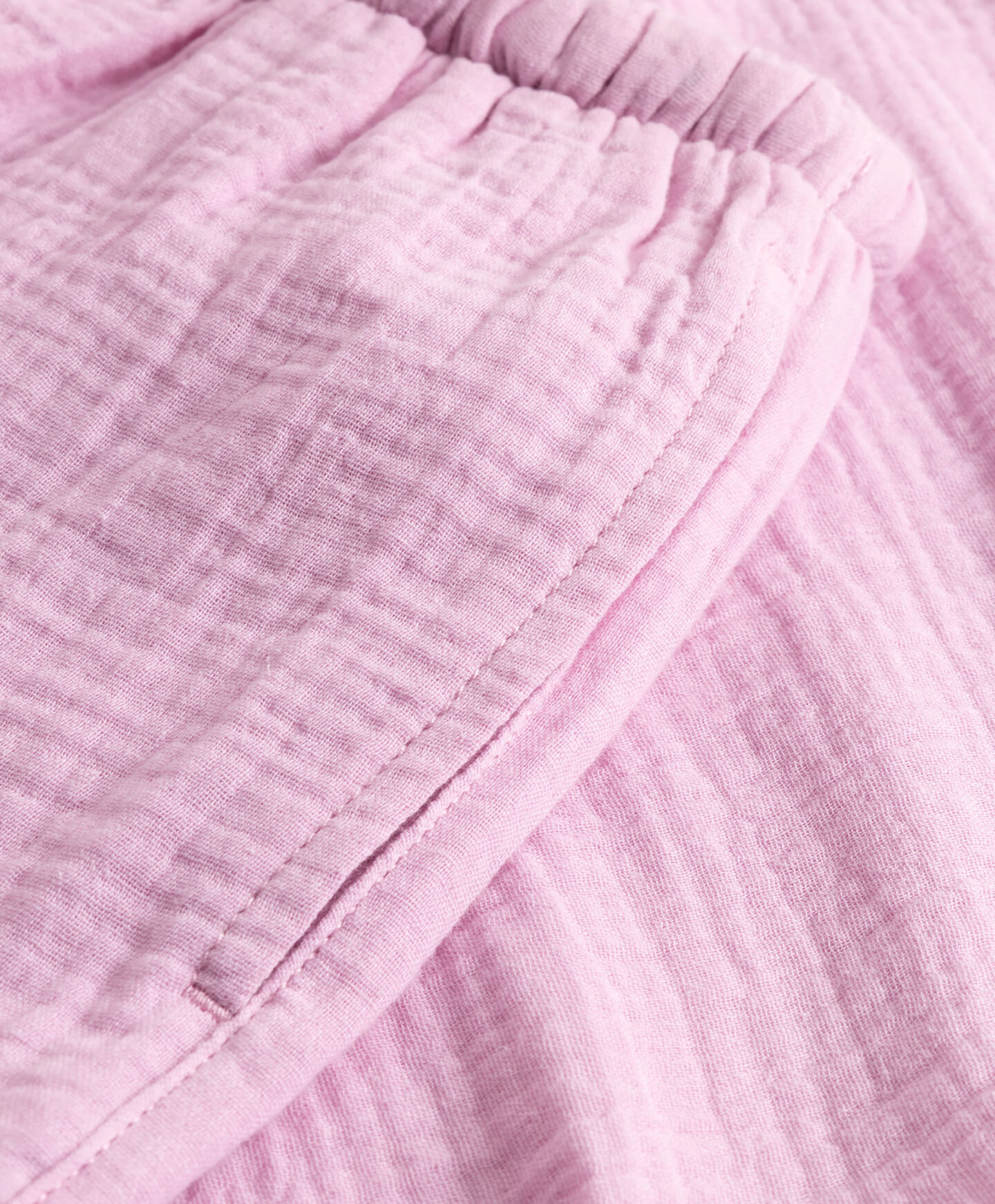 Τα παντελόνια για κορίτσια από 100% βαμβάκι είναι ο ορισμός της καλοκαιρινής άνεσης σε μια κομψή έκδοση! Το καθαρό βαμβάκι επιτρέπει στο δέρμα να αναπνέει ελεύθερα, δεν γρατσουνάει και δεν προκαλεί ερεθισμούς. Η χαρακτηριστική, ελαφρώς κυματιστή δομή του υφάσματος κάνει το παντελόνι να φαίνεται υπέροχο χωρίς να χρειάζεται σιδέρωμα! Τα φαρδιά πόδια και το λεπτό ροζ χρώμα είναι απόλυτη επιτυχία της σεζόν!