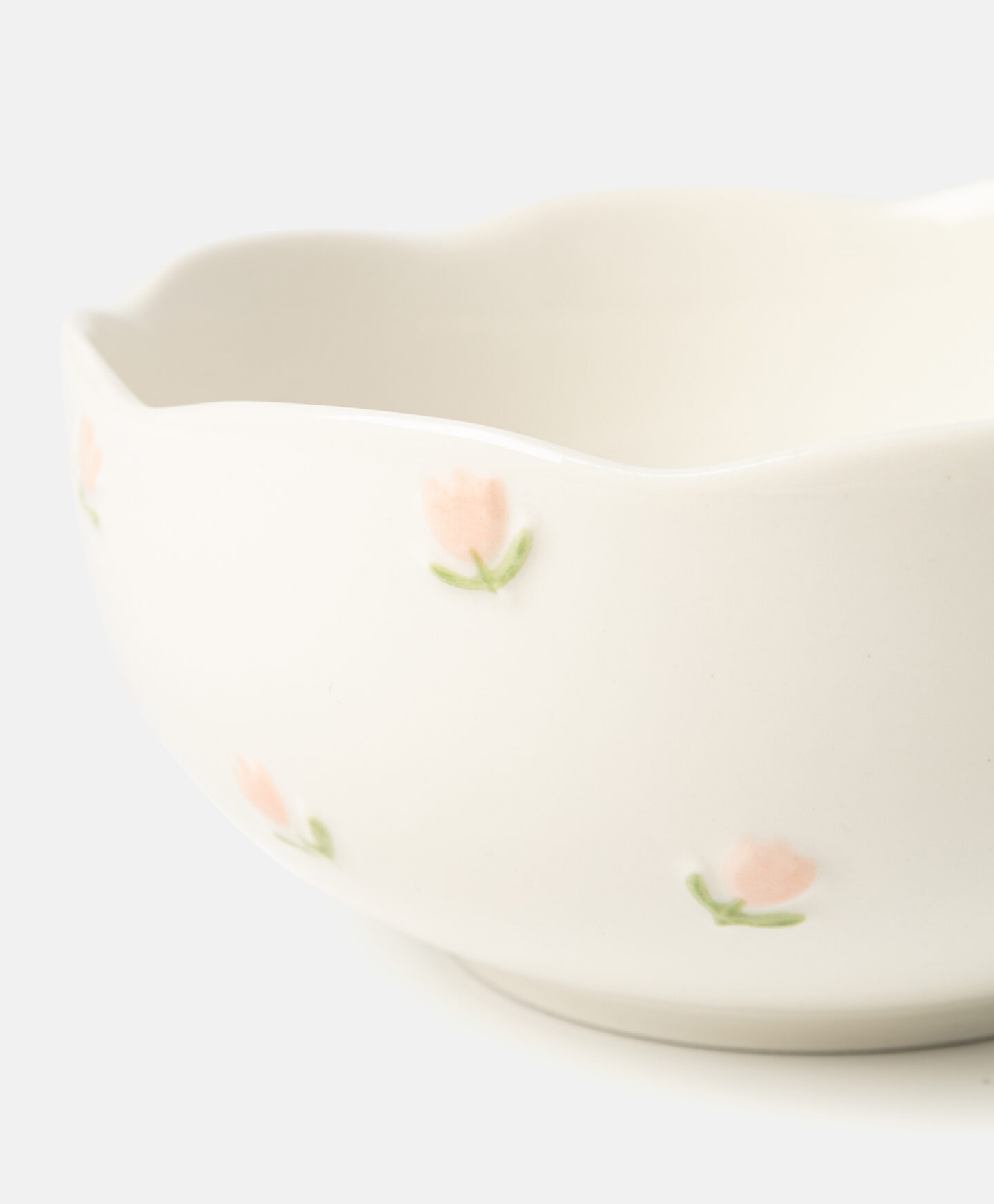 Το πορσελάνινο μπολ σαλάτας με διακριτικό σχέδιο τουλίπας θα ξεχωρίσει στην κουζίνα σας. Τα διακοσμητικά, ακανόνιστα σχήματα στα χείλη του το καθιστούν πραγματικά μοναδικό. Διατίθενται και ταιριαστά πιάτα και φλιτζάνια.
