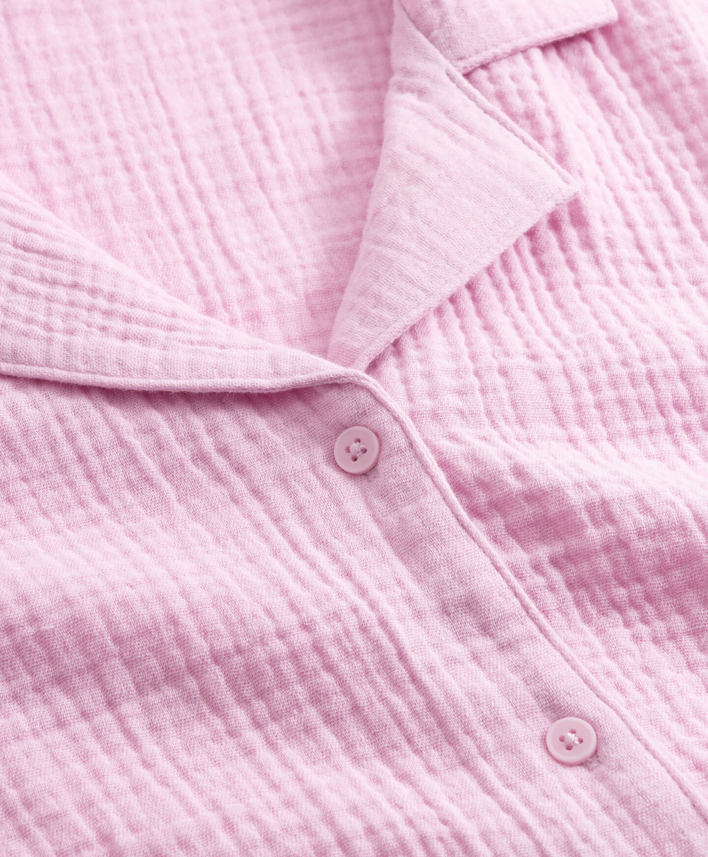 Το πουκάμισο για κορίτσια από 100% βαμβάκι συνδυάζει ρομαντικό στυλ με απόλυτη άνεση. Το μουσελίνο ύφασμα είναι εξαιρετικά απαλό, ιδανικό για ευαίσθητο δέρμα που έχει τάση για ερεθισμούς. Το καλοκαίρι δροσίζει, ενώ τις πιο δροσερές βραδιές τυλίγει απαλά, φροντίζοντας για τη βέλτιστη θερμοκρασία του σώματος. Το διακριτικό ροζ χρώμα προσθέτει φρεσκάδα και ταιριάζει με κάθε καλοκαιρινό στυλ.