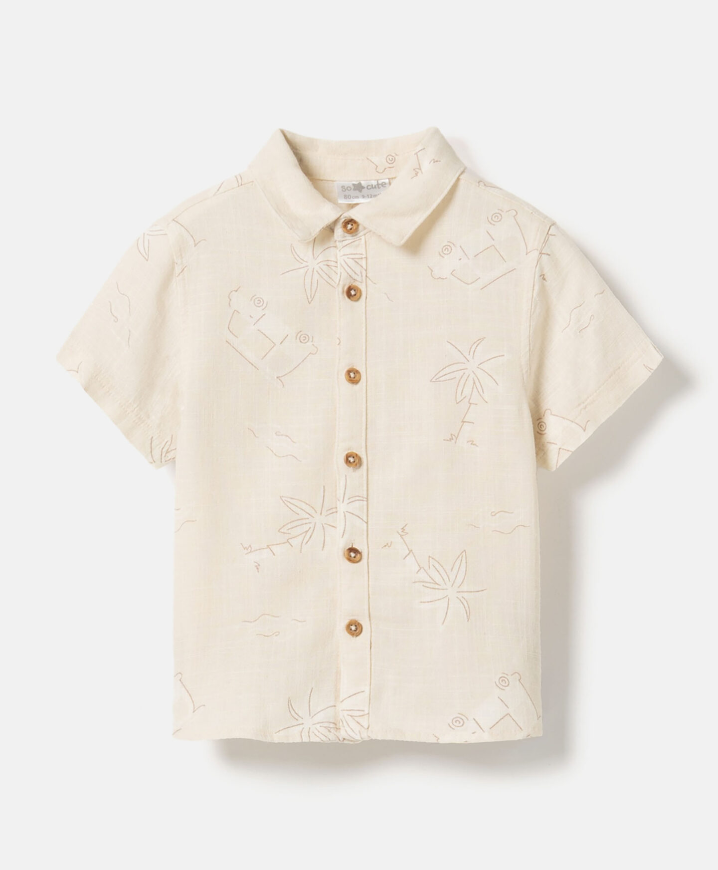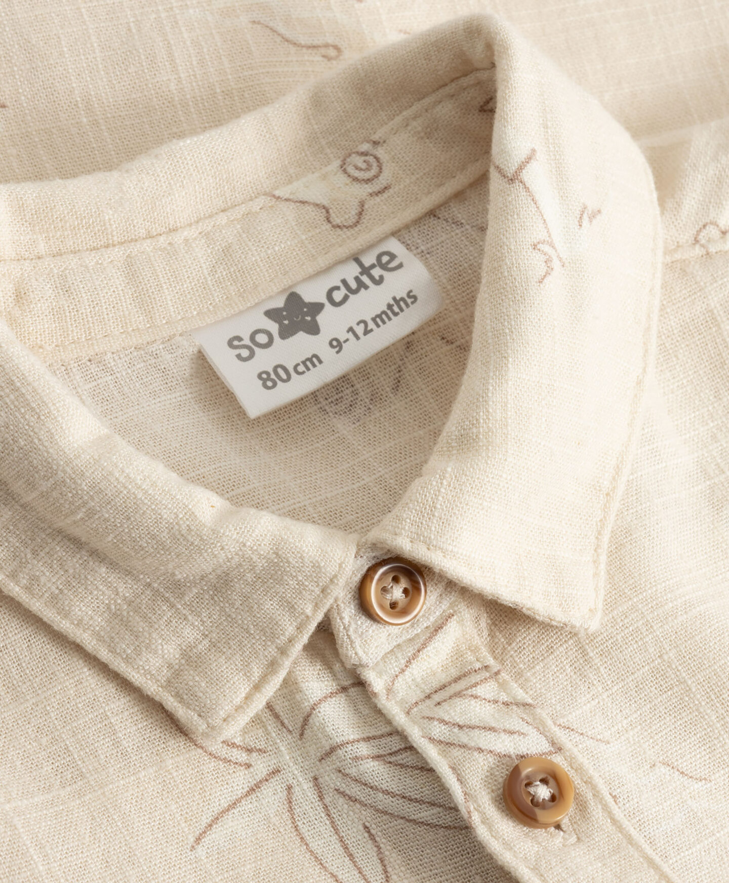 Το πουκάμισο για μωρά αγόρια είναι ένα παράδειγμα ρούχου όπου οι λεπτομέρειες έχουν μεγάλη σημασία. Φτιαγμένο από ελαφρύ, αναπνεύσιμο ύφασμα με βισκόζη και λινό, θα φροντίσει για τη θερμική άνεση του μωρού ακόμα και στις πιο ζεστές μέρες. Τα τέλεια προσαρμοσμένα μανίκια εξασφαλίζουν απόλυτη ελευθερία κινήσεων, ενώ τα κομψά, προσεκτικά επιλεγμένα κουμπιά όχι μόνο διευκολύνουν το ντύσιμο, αλλά και προσδίδουν ένα κομψό φινίρισμα. Το χαριτωμένο σχέδιο με αυτοκινητάκια και φοίνικες σίγουρα ξεχωρίζει σε σχέση με τα κλασικά ρούχα.