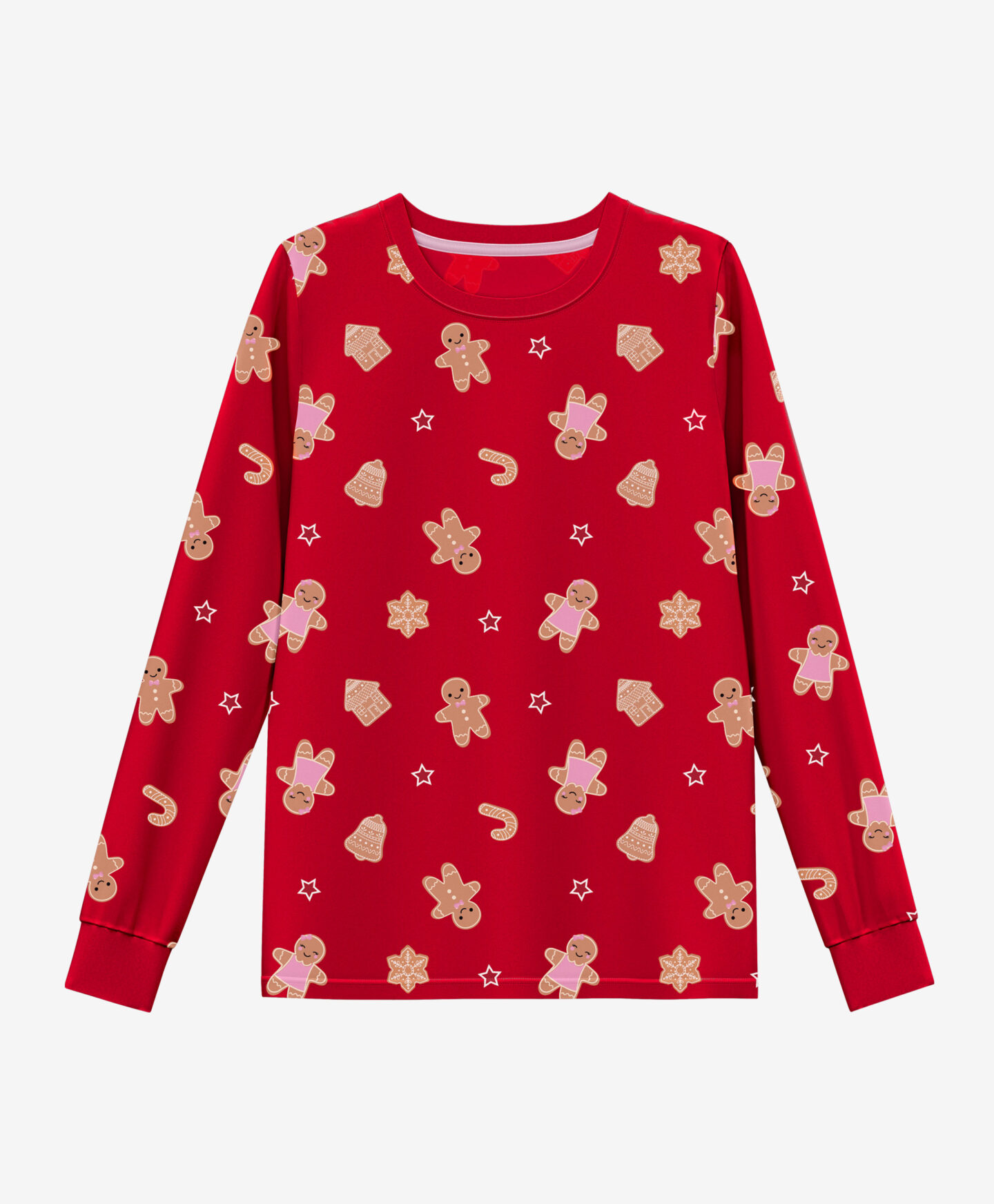 Οι γυναικείες πιτζάμες με gingerbread από 100% βαμβάκι αποτελούνται από ένα μακρυμάνικο μπλουζάκι και παντελόνι, καθιστώντας τις ιδανικές για τις πιο δροσερές νύχτες. Το μαλακό και διαπνέον βαμβάκι εξασφαλίζει άνεση και ζεστασιά για το παιδί. Το εορταστικό σχέδιο φέρνει μια χαρούμενη ατμόσφαιρα στο σπίτι.