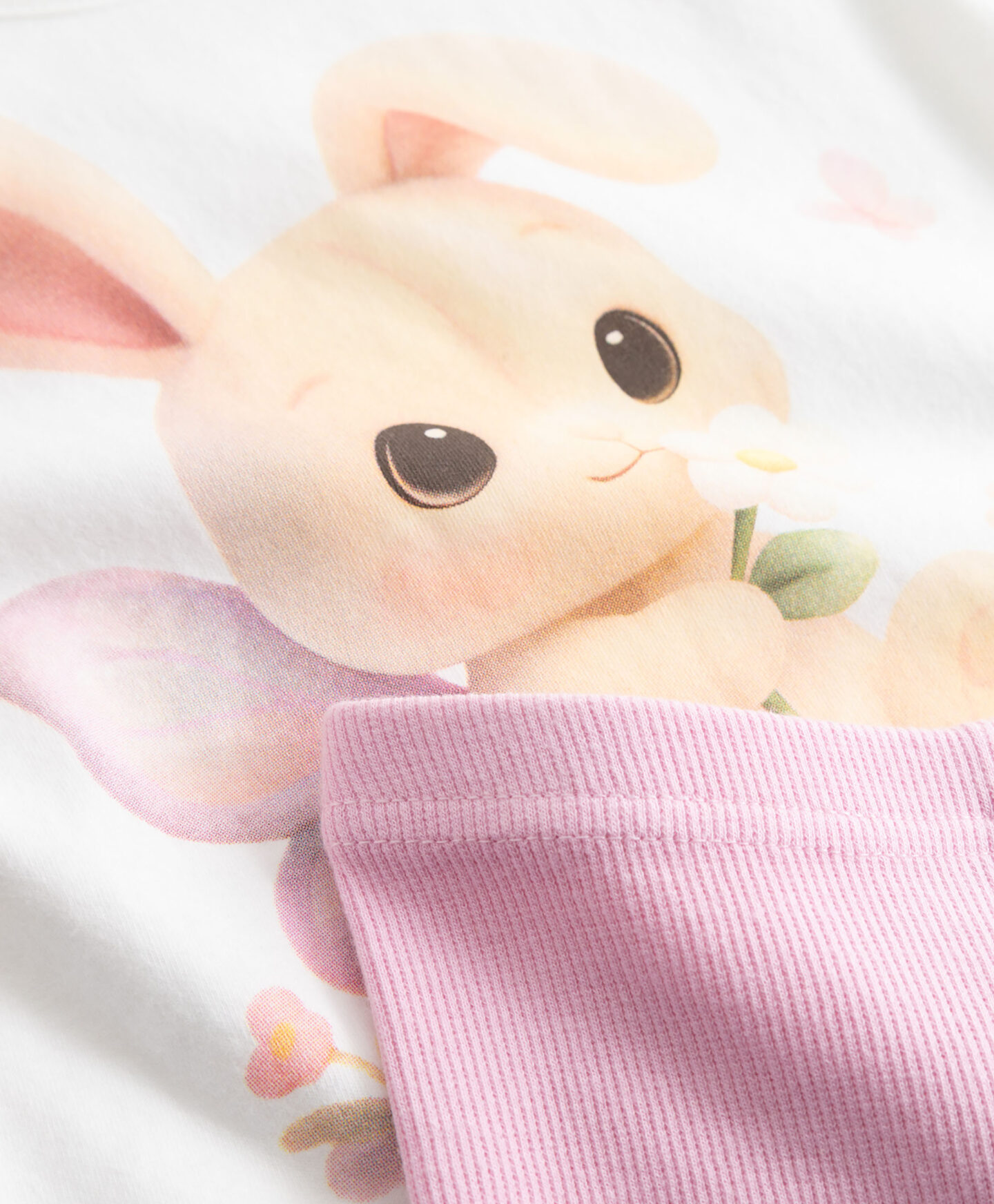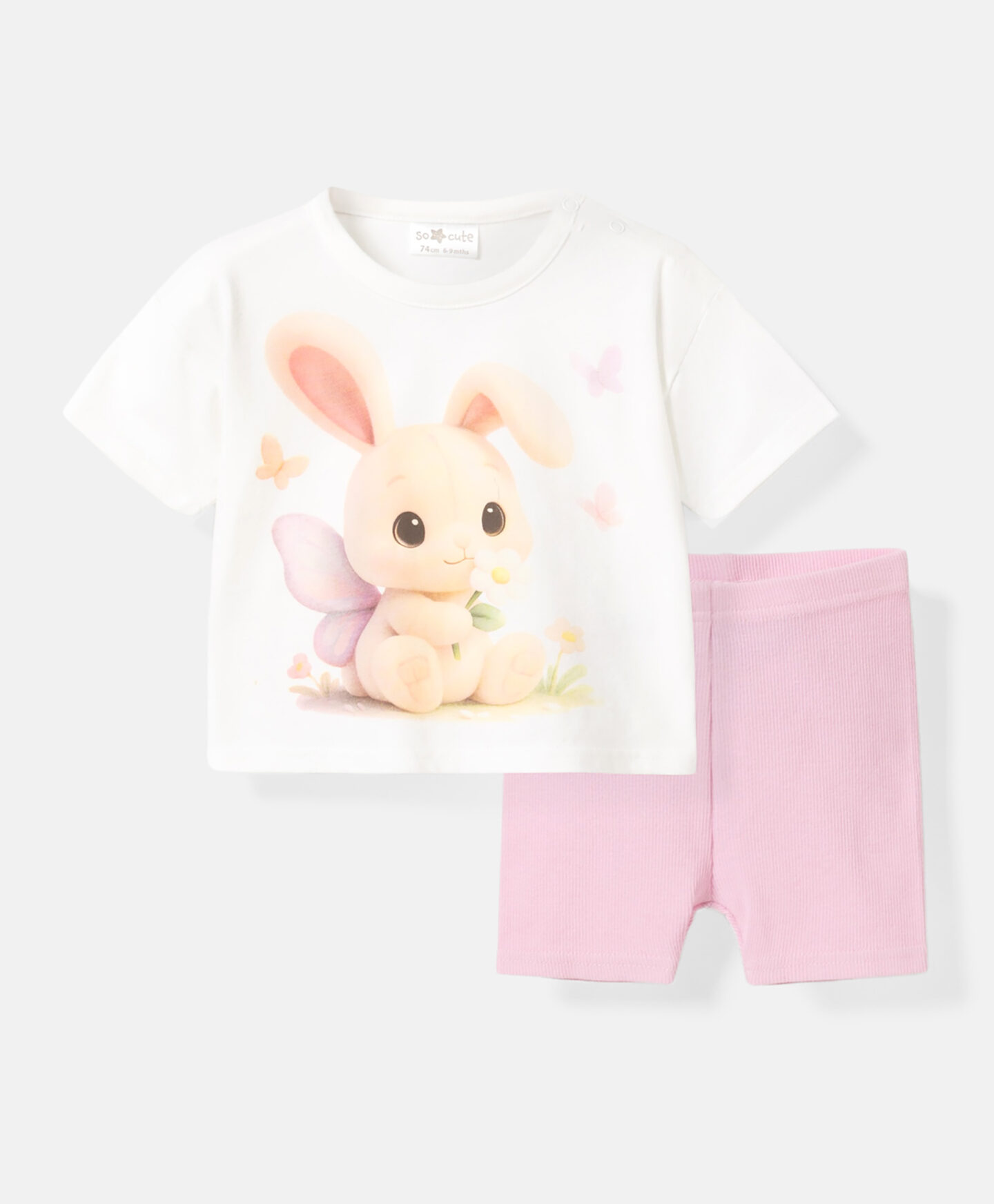 Το σετ για μωρά κορίτσια αποτελείται από ένα t-shirt και ένα σορτς ποδηλασίας. Το t-shirt είναι φτιαγμένο από μαλακό βαμβακερό υλικό που είναι ευχάριστο στην ευαίσθητη επιδερμίδα, ενώ το γραφικό με το κουνέλι στο μπροστινό μέρος θα κερδίσει την καρδιά κάθε μικρής λάτρης αυτών των αξιολάτρευτων πλασμάτων. Τα κολάν με υψηλή περιεκτικότητα σε βαμβάκι είναι ελαστικά, οπότε δεν περιορίζουν την κίνηση και το παιχνίδι.