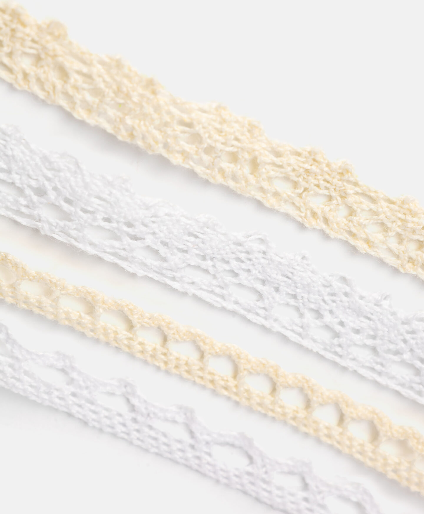 Αυτό το κιτ DIY αποτελείται από 4 μέτρα δαντέλα σε διάφορα σχέδια. Είναι ιδανικό για όσους αγαπούν το DIY, τα δημιουργικά έργα και τα εξατομικευμένα αξεσουάρ για το σπίτι. Ιδανικό για τη διακόσμηση δώρων, τη δημιουργία στεφανιών, τη συσκευασία ανθοδεσμών, τη διακόσμηση τραπεζιών και άλλα έργα — το μόνο όριο είναι η φαντασία σας!