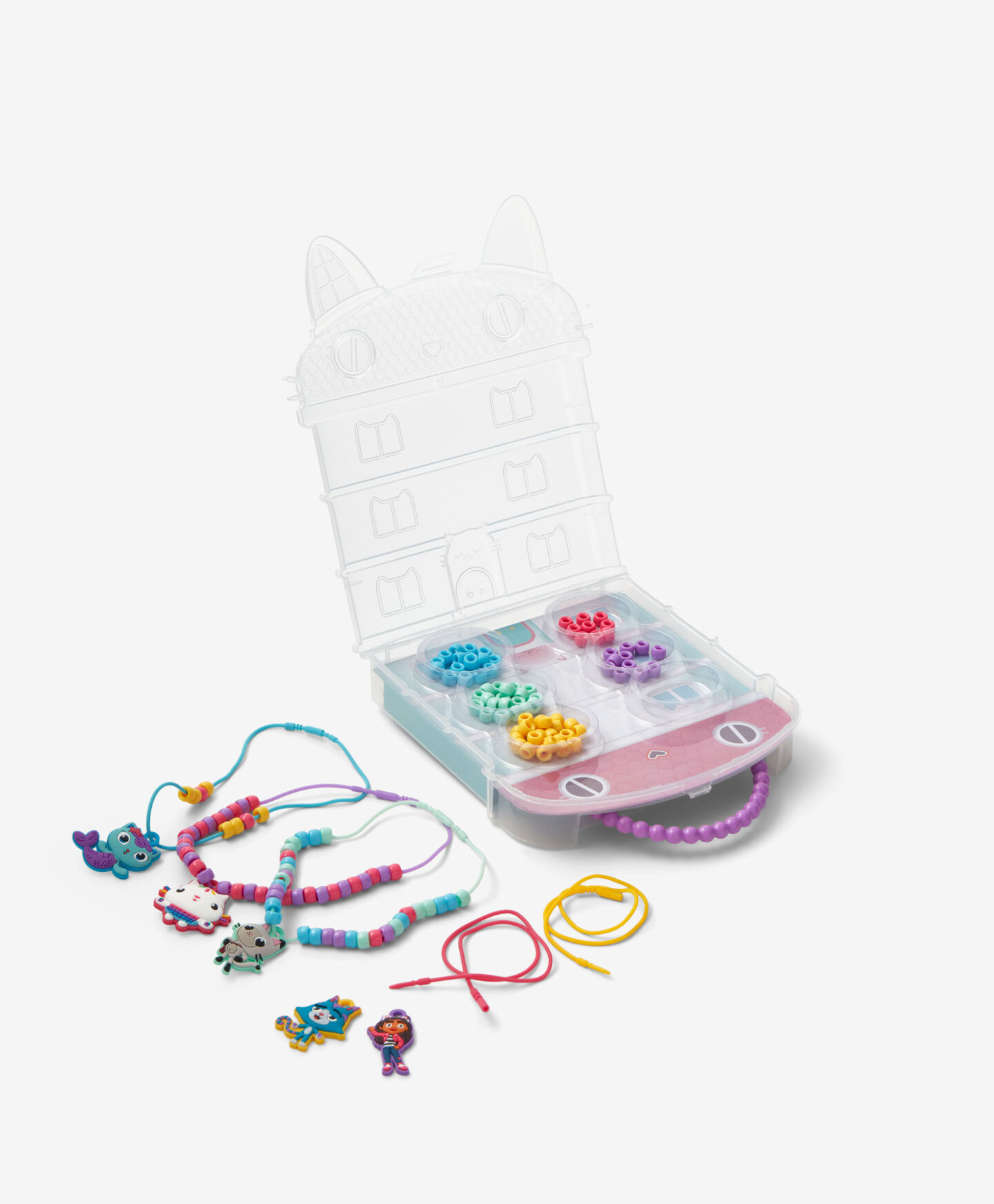 Το σετ για την κατασκευή κοσμημάτων Gabi’s Cat House σε βαλίτσα είναι το ιδανικό δώρο για τους θαυμαστές της σειράς κινουμένων σχεδίων. Το πρακτικό κουτί σε σχήμα γατίσιας κουκλόσπιτου περιέχει όλα όσα χρειάζονται για να φτιάξετε μοναδικά κοσμήματα: πολύχρωμα χάντρες, λαστιχάκια και μενταγιόν με τους αγαπημένους σας χαρακτήρες. Το σετ σας επιτρέπει να εξασκήσετε τις χειρονακτικές σας δεξιότητες και να αναπτύξετε τη δημιουργικότητά σας. Κατάλληλο για παιδιά άνω των 6 ετών.
