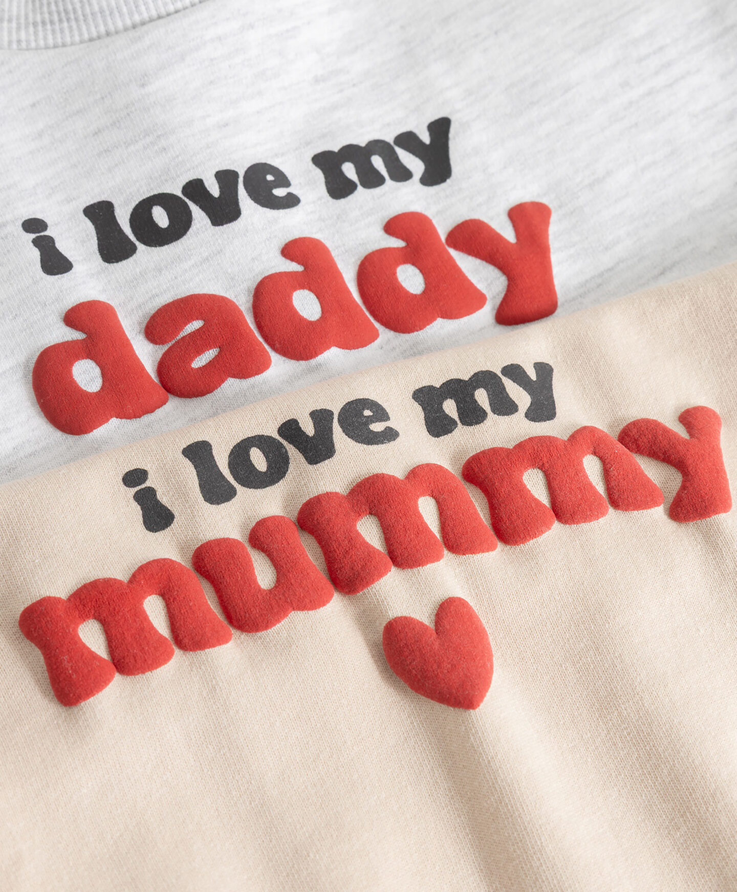 Το σετ με 2 φούτερ για μωρά με επιγραφές για την Ημέρα του Αγίου Βαλεντίνου, κατασκευασμένες από 100% βαμβάκι, είναι ιδανικό για τους μικρότερους λάτρεις αυτής της γιορτής. Ιδανικές για να γιορτάσουν την πρώτη τους Ημέρα του Αγίου Βαλεντίνου, προσφέρουν άνεση με το μαλακό, φυσικό υλικό τους, ιδανικό για το ευαίσθητο δέρμα ενός μωρού από τις πρώτες μέρες της ζωής του.