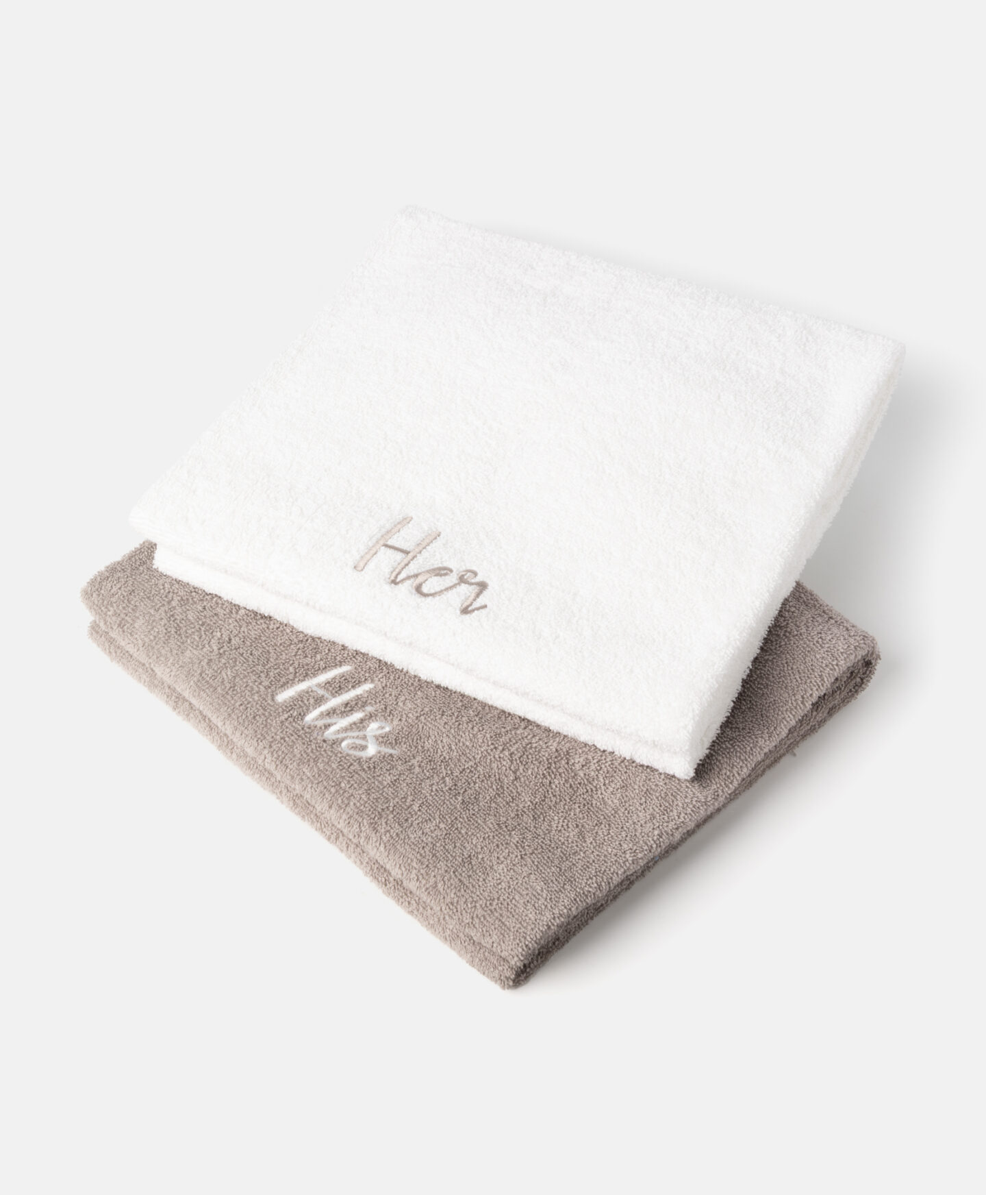 Το σετ 2 πετσετών 100% βαμβάκι σε μεγάλο μέγεθος με κεντήματα είναι ιδανικό για ζευγάρια. Είναι απορροφητικές, απαλές στο δέρμα και έχουν εξαιρετική αισθητική. Ιδανικές για στέγνωμα μετά το μπάνιο, στην πισίνα ή κατά τη διάρκεια μιας εκδρομής στην παραλία. Η διακριτική χρωματική παλέτα ταιριάζει στα περισσότερα μπάνια. Διατίθενται διάφορες διαστάσεις στην προσφορά.