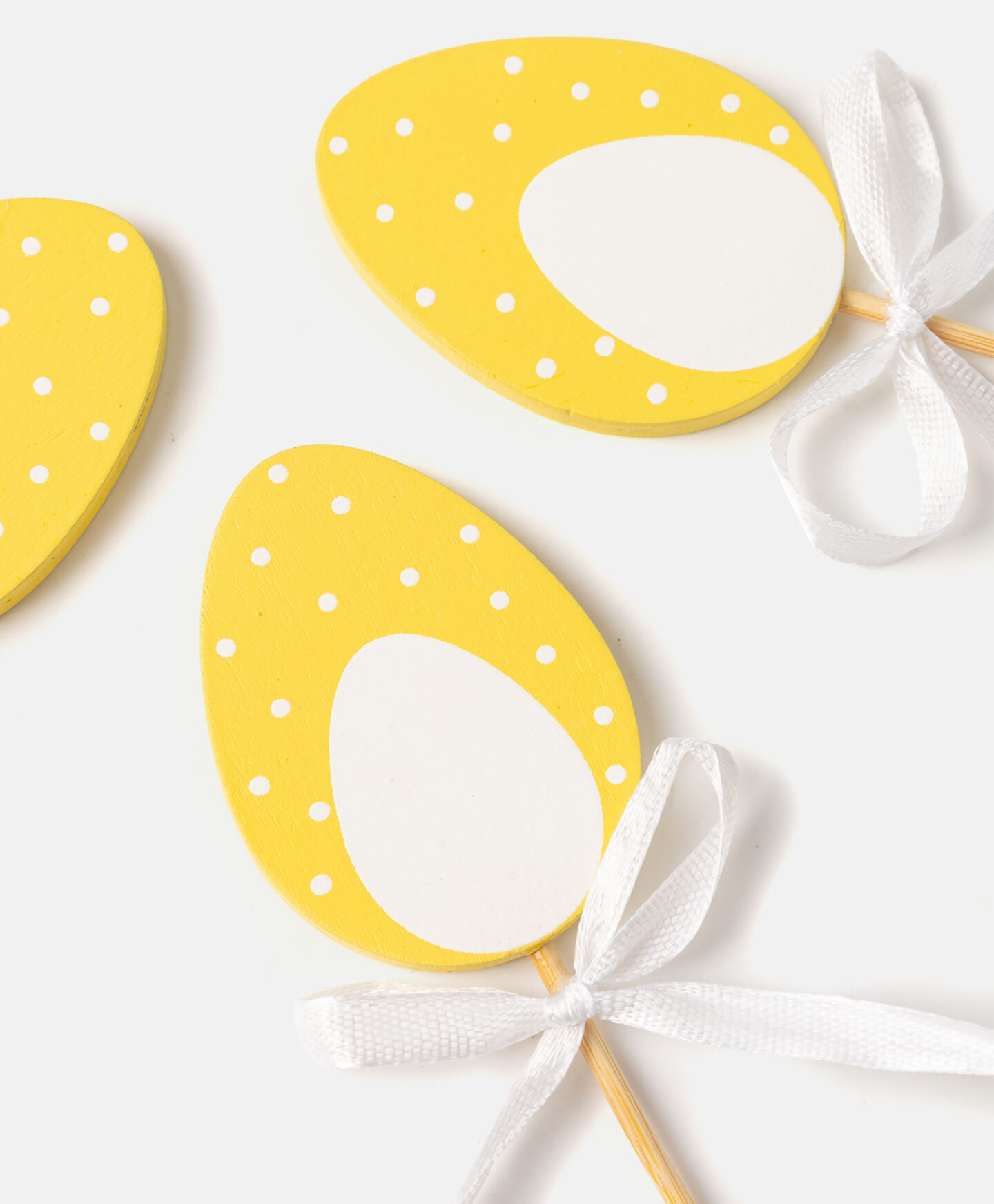 Αυτό το σετ 4 αυγών με φιόγκο είναι μια κομψή διακόσμηση εμπνευσμένη από τα σύμβολα του Πάσχα. Ιδανικό για τη διακόσμηση καλαθιών, γλαστρών ή μπουκέτων. Διατίθενται διάφορα σχέδια.