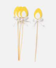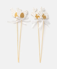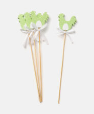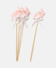 Αυτό το σετ 4 κοτόπουλων και λαγουδάκι με φιόγκους είναι μια κομψή διακόσμηση εμπνευσμένη από τα σύμβολα του Πάσχα. Ιδανικό για τη διακόσμηση καλαθιών, γλαστρών ή μπουκέτων. Διατίθενται διάφορα σχέδια.